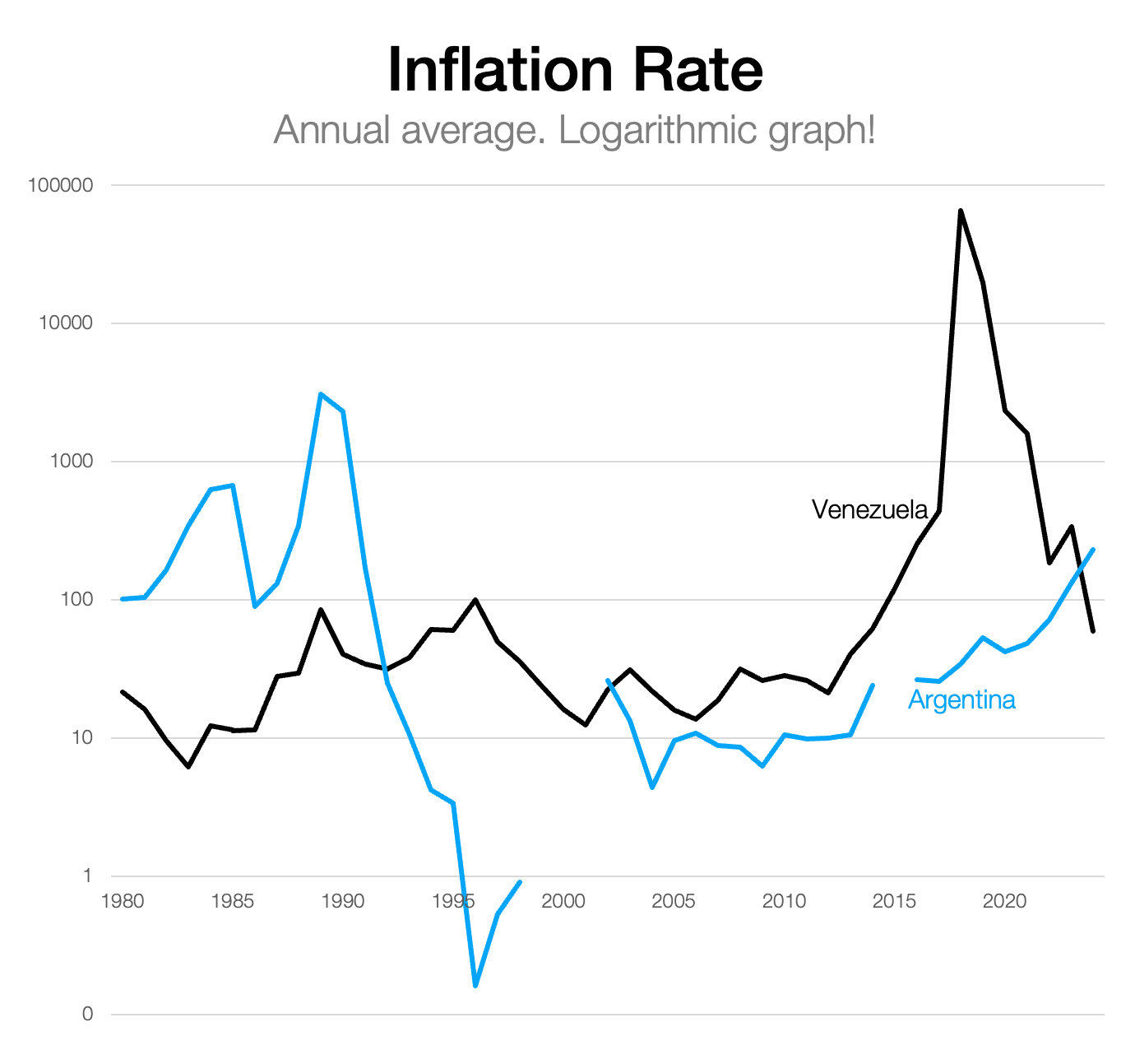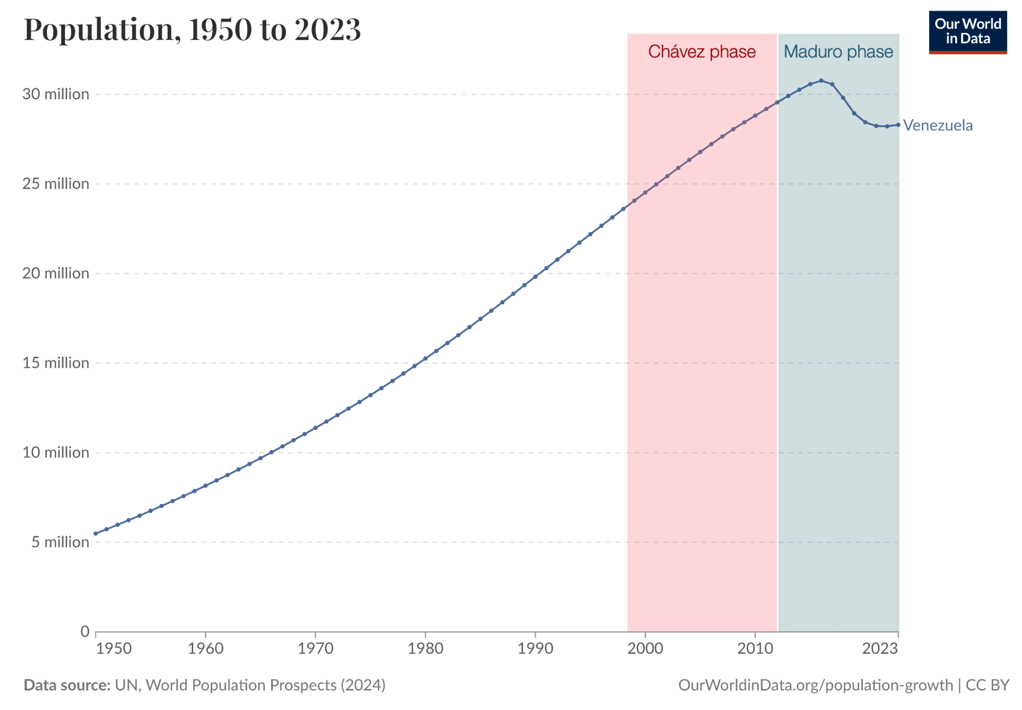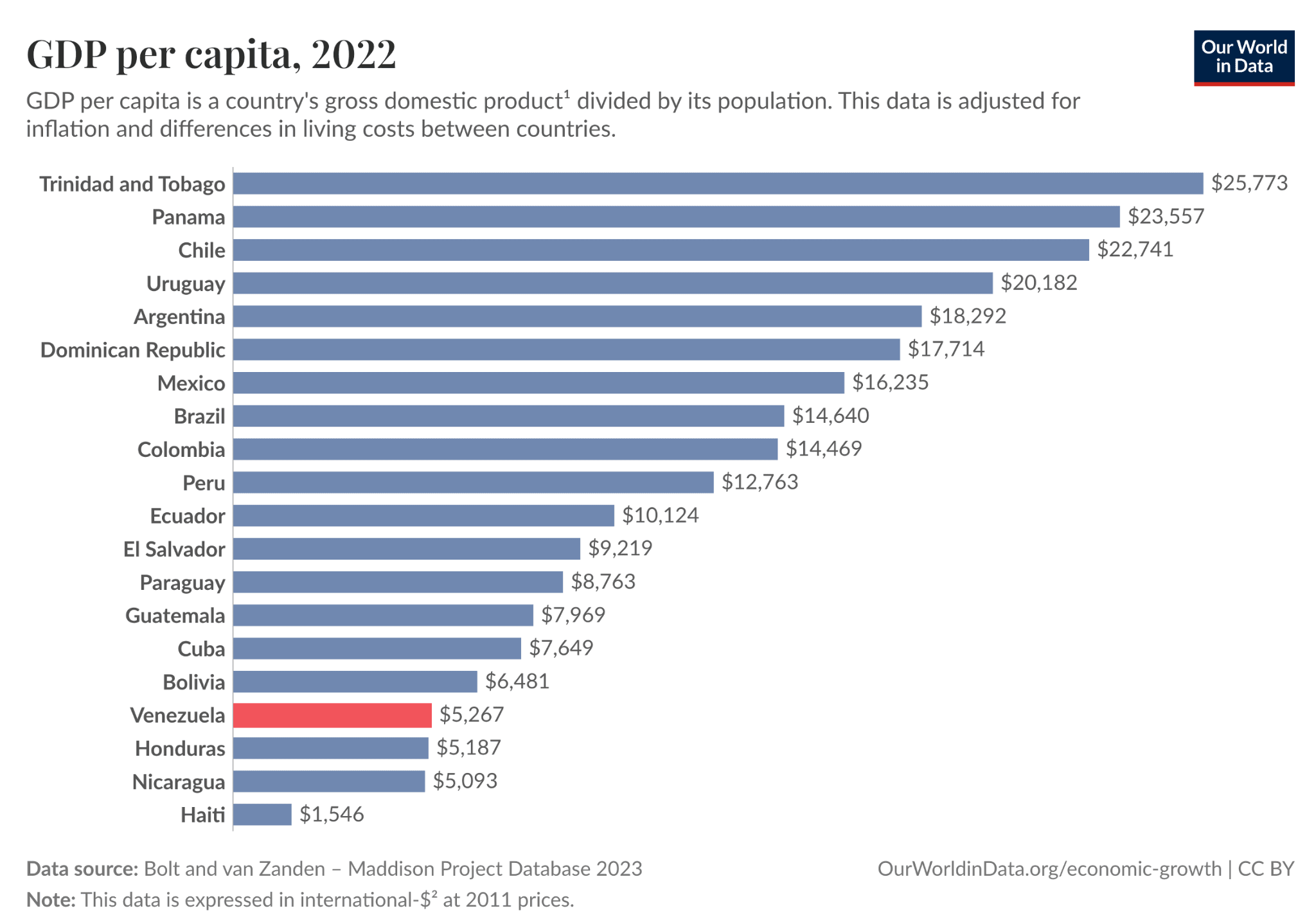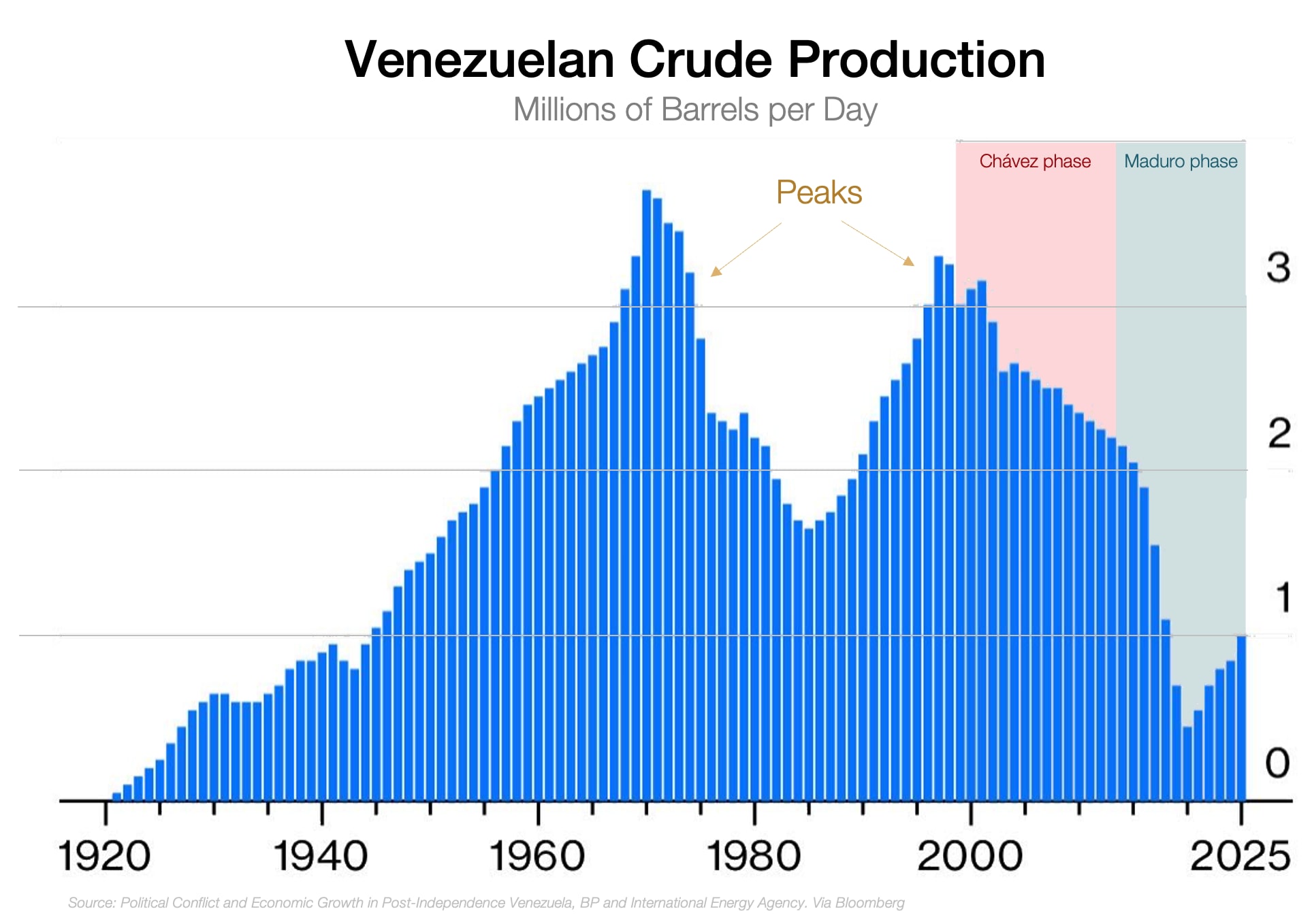 This is, of course, due to oil. Venezuela used to produce a lot, and now it doesn’t.
