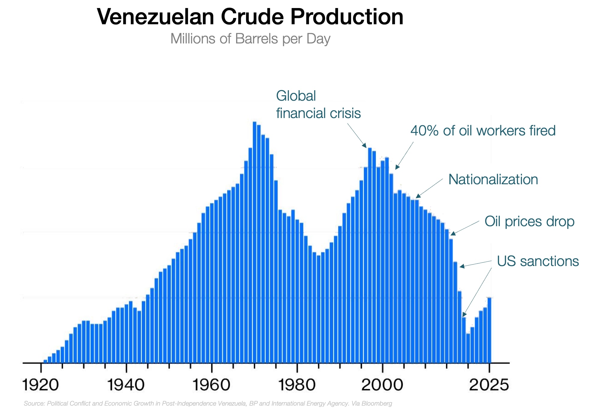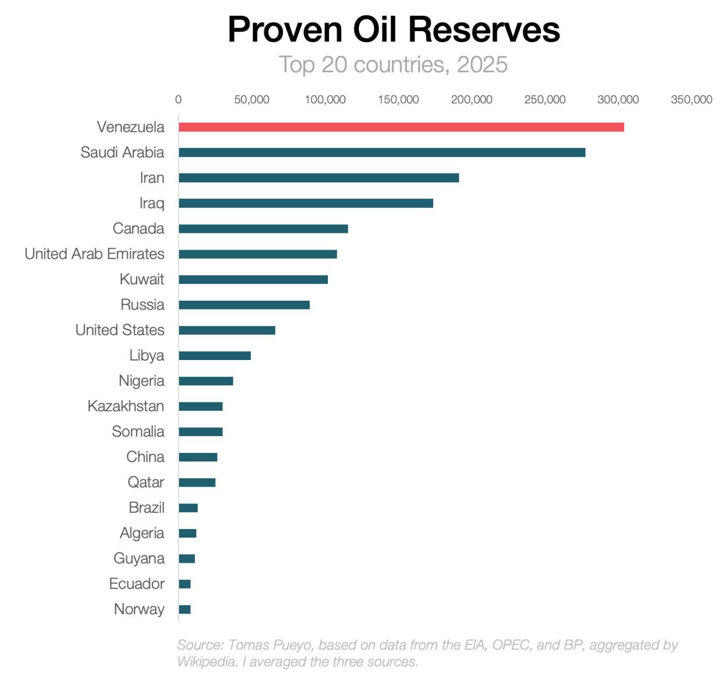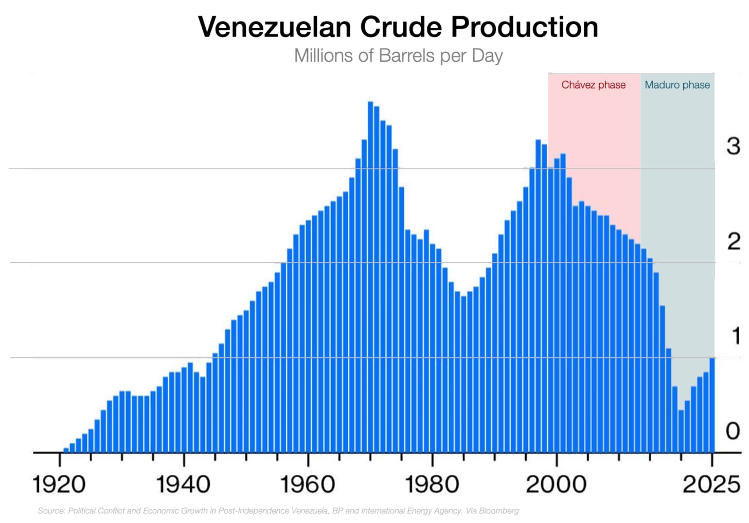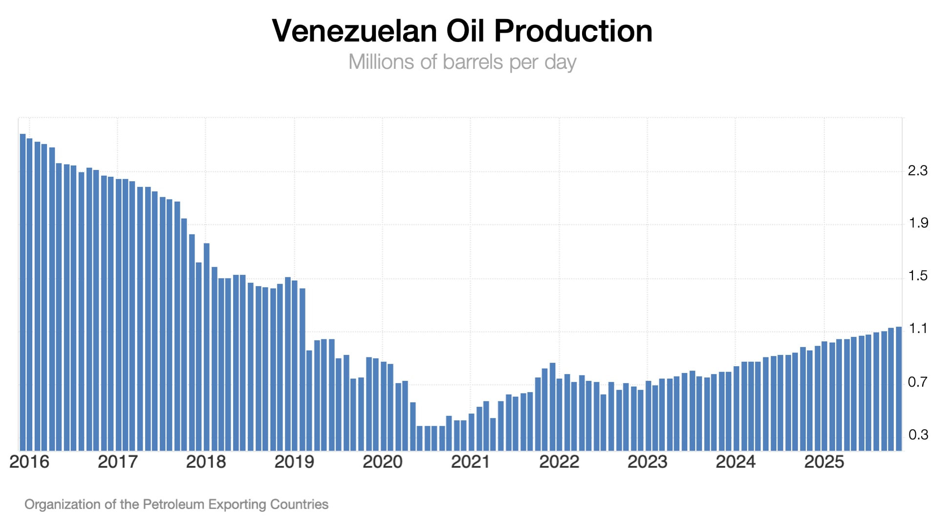 Trump claims that the abduction of Maduro is all about the oil: capturing it for US use, while keeping competitors from its benefits. But how realistic is it? This depends on how much oil can be extracted from Venezuela. Today, it’s ~1.1M barrels per day.