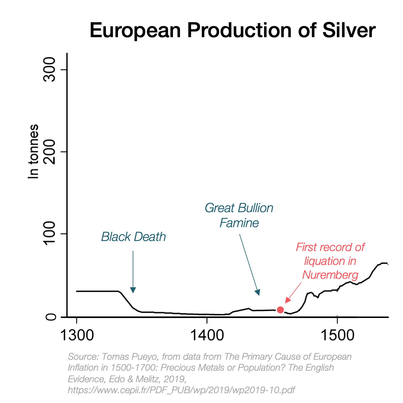 But there were two significant innovations that allowed Europe to increase its silver production by 5x between the 1460s and the 1540s.