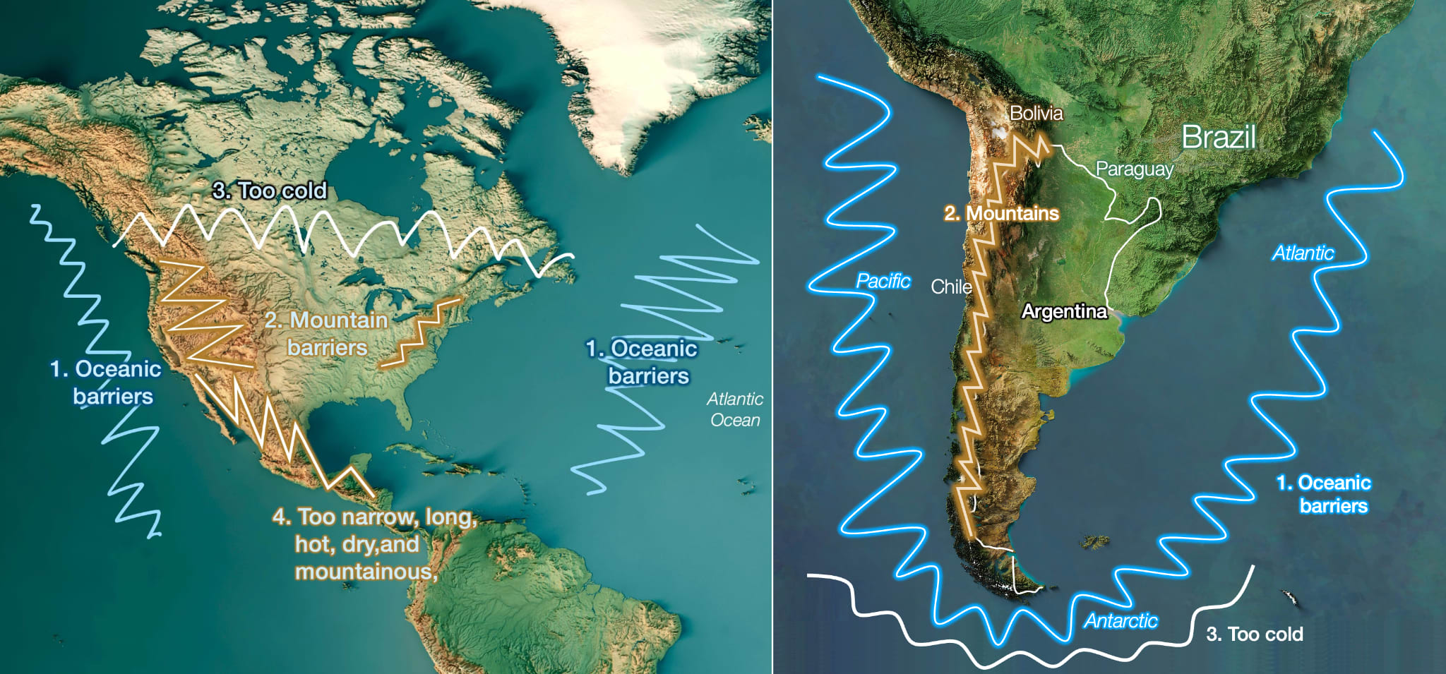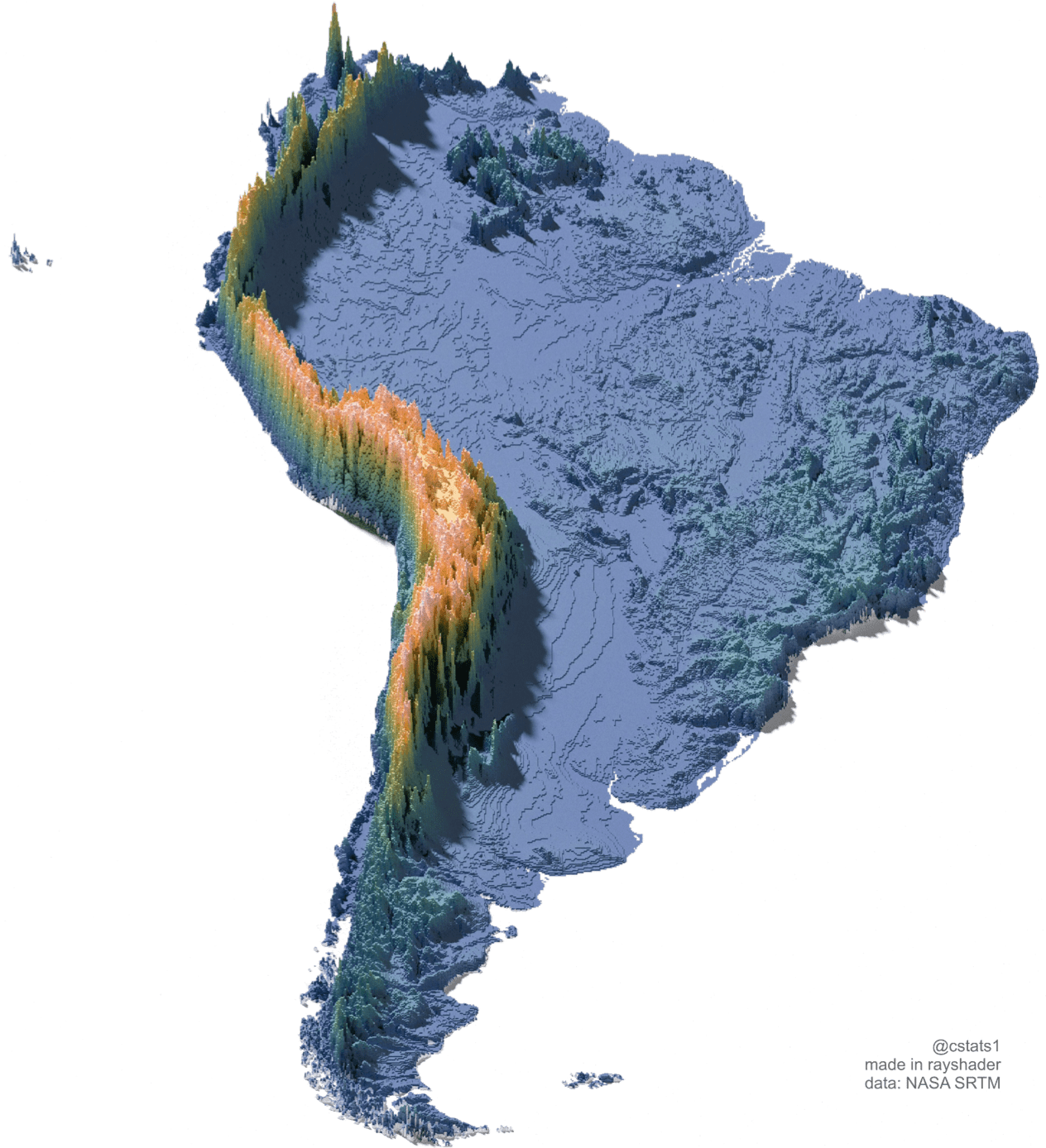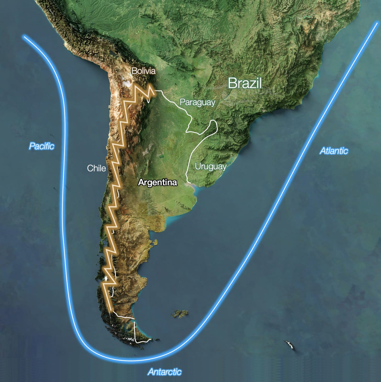 And if you think it’s a coincidence, think again, for both lateral mountain ranges have the same origins in the US and Argentina! On the western side, we find the tall mountain ranges.