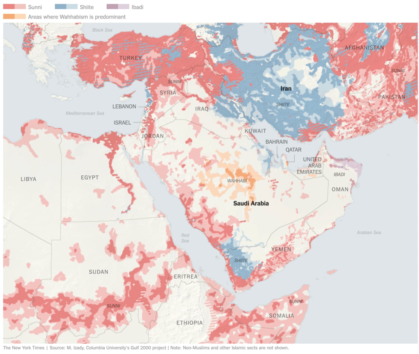 To the east, the population is majority Shia, at odds with the Wahhabi religious interpretation.