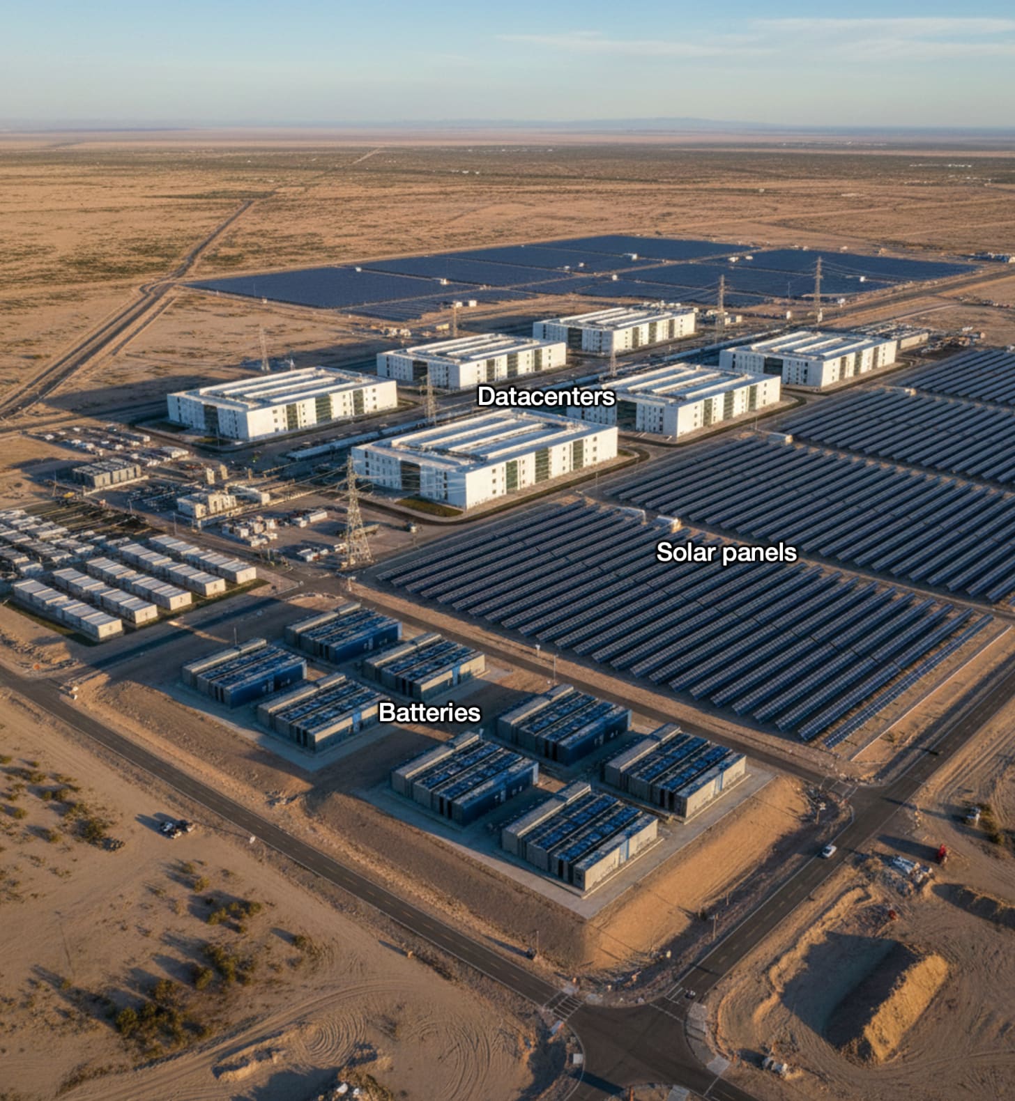 Batteries to store the excess electricity from the solar panels during the day and power the datacenters at night