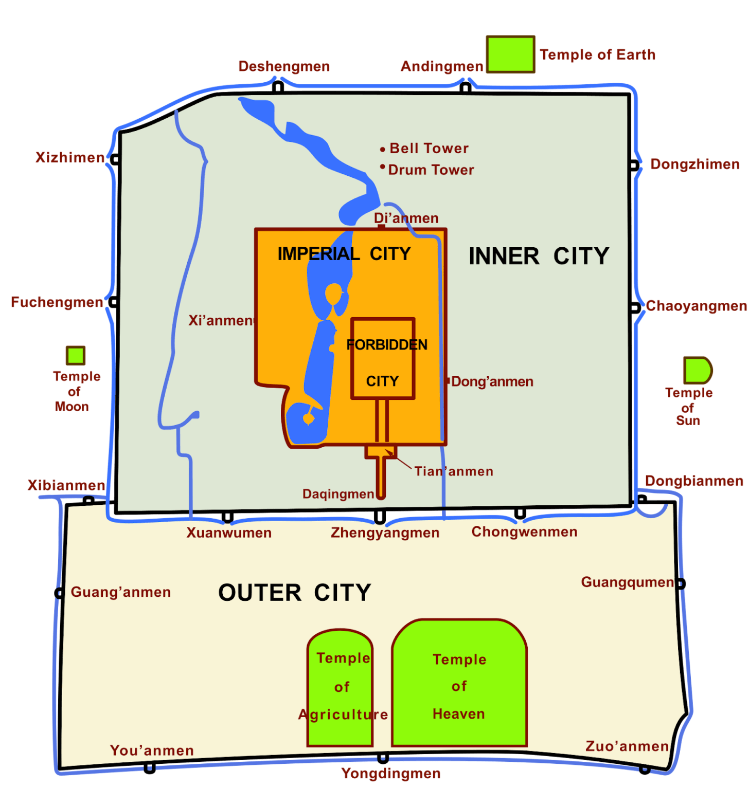 The nesting from outside to inside is continued through the Imperial City and the Inner City.