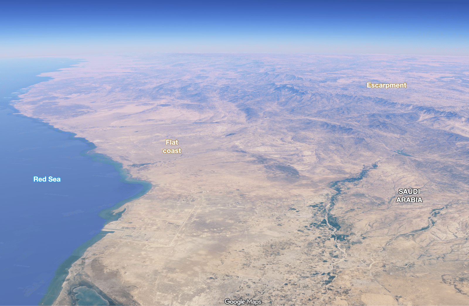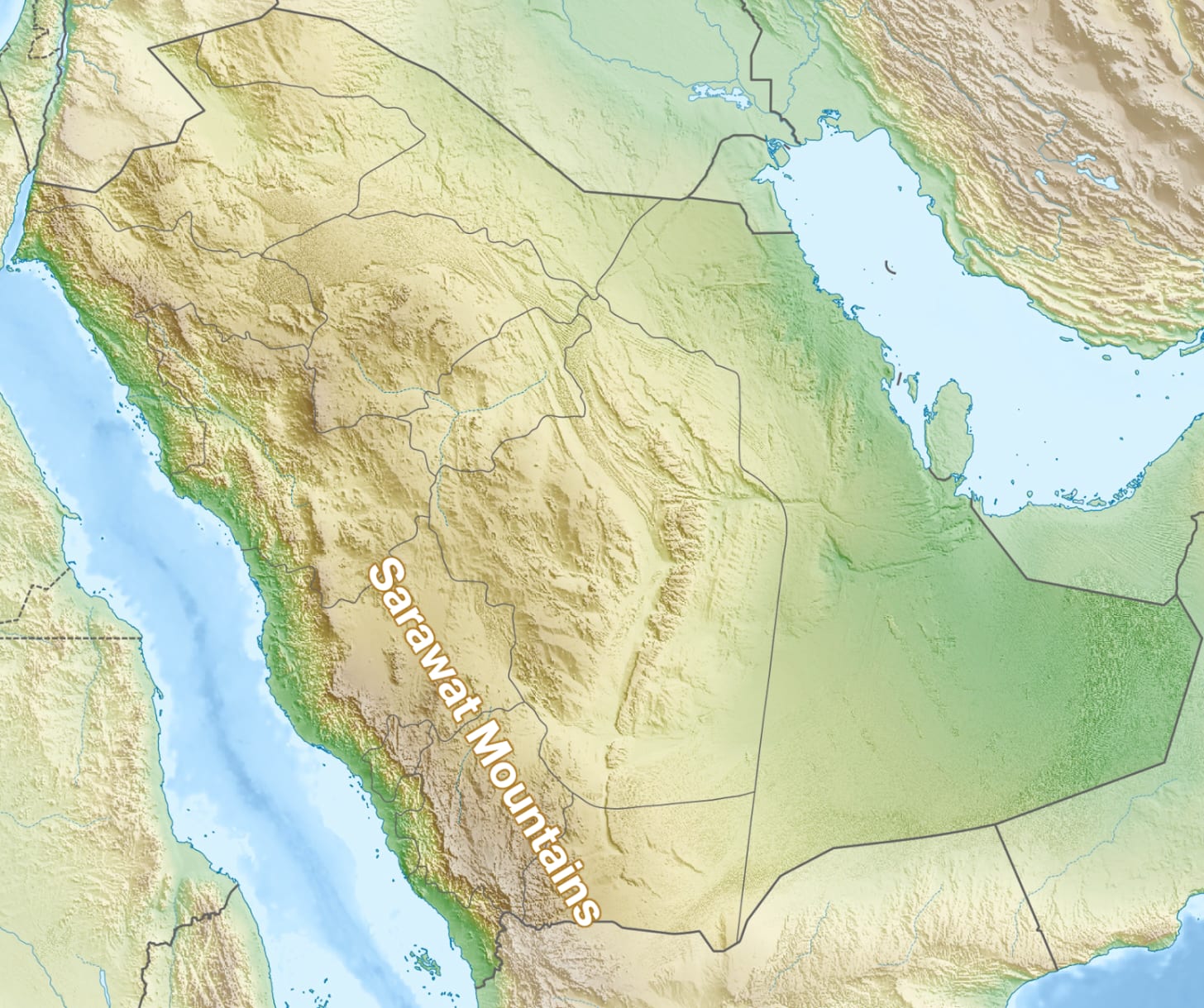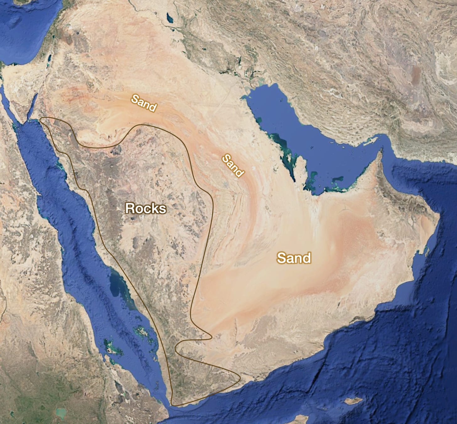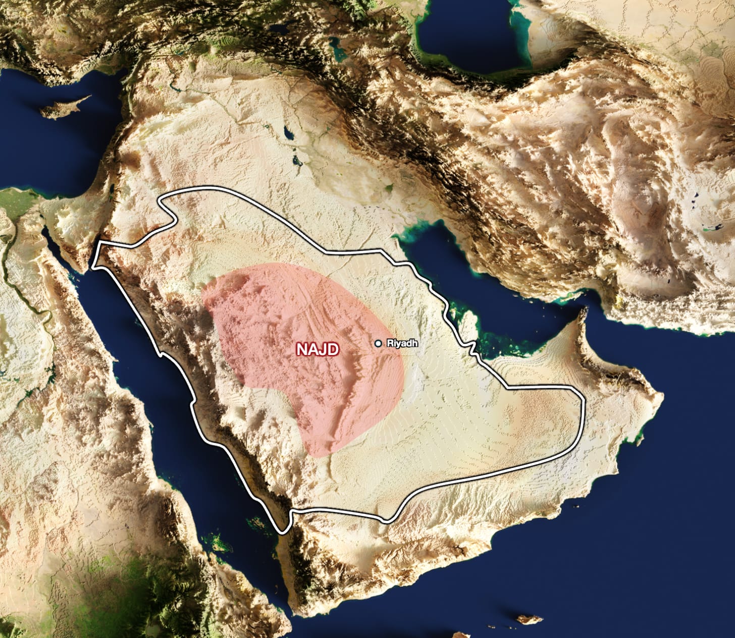 Every map draws it differently, so I had to pick what I thought made the most sense, and my guess is the Najd is defined by the Arabian Shield outside of the coast, because: