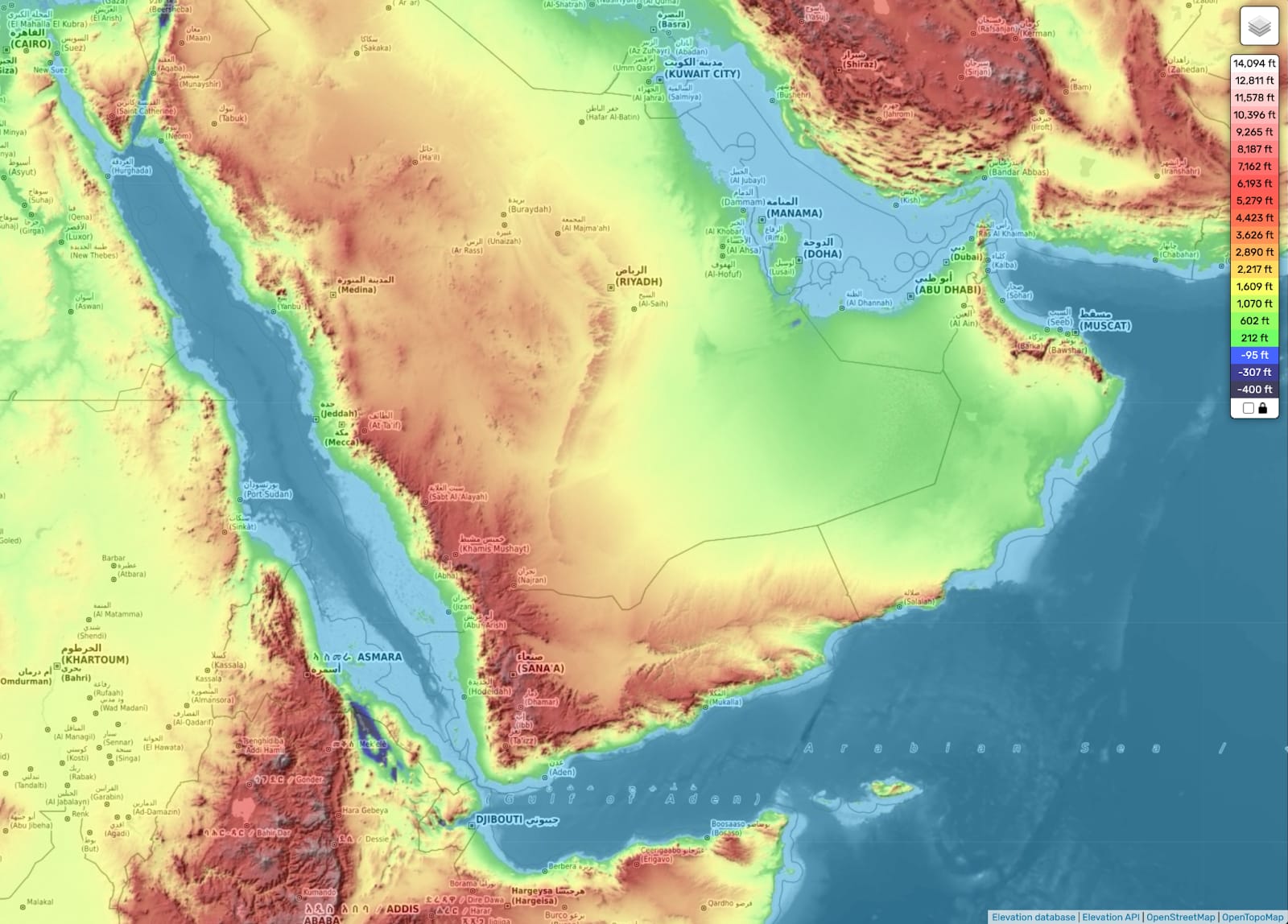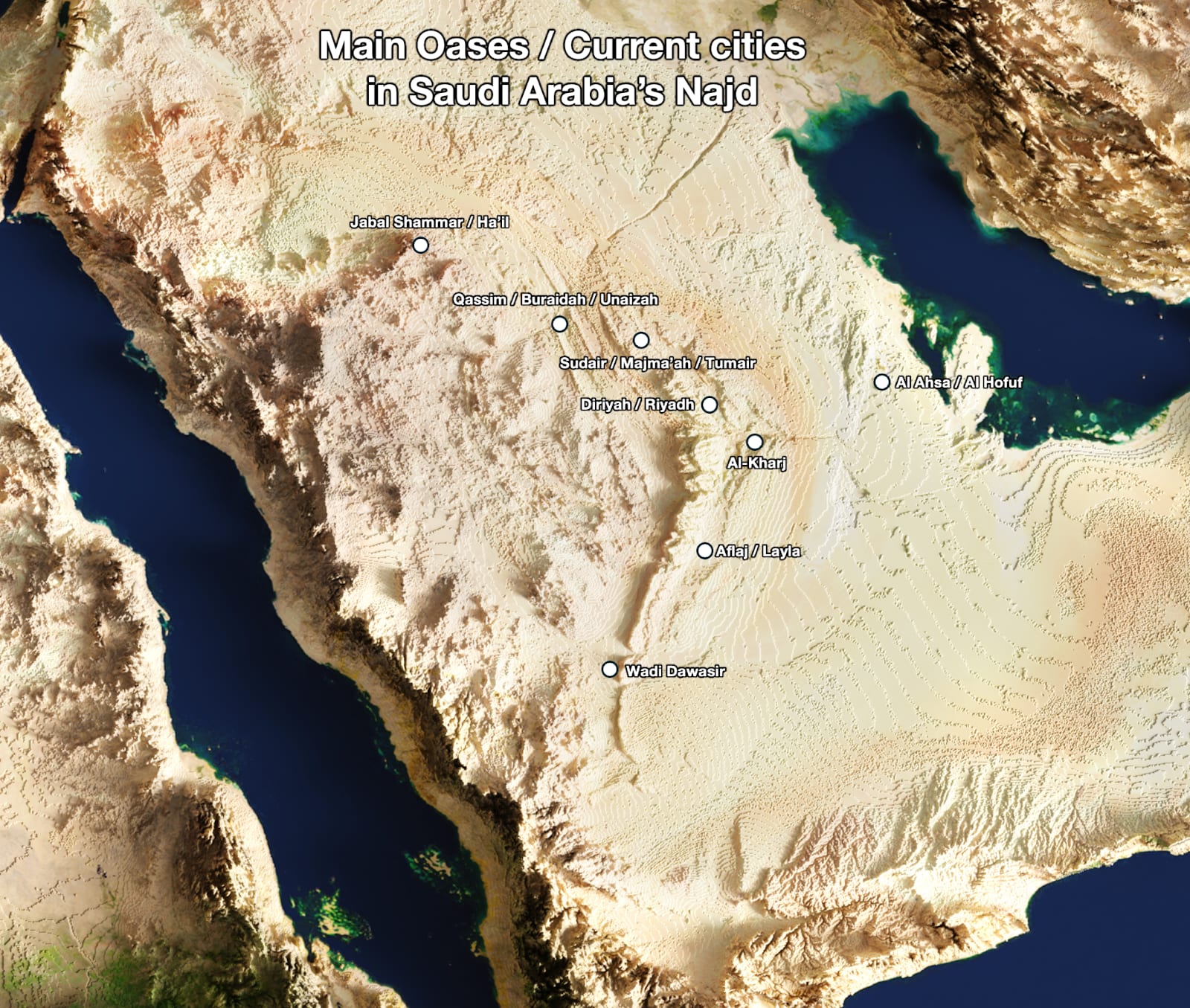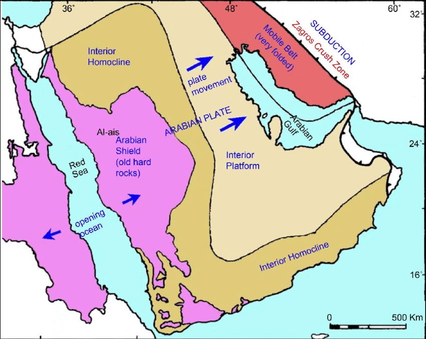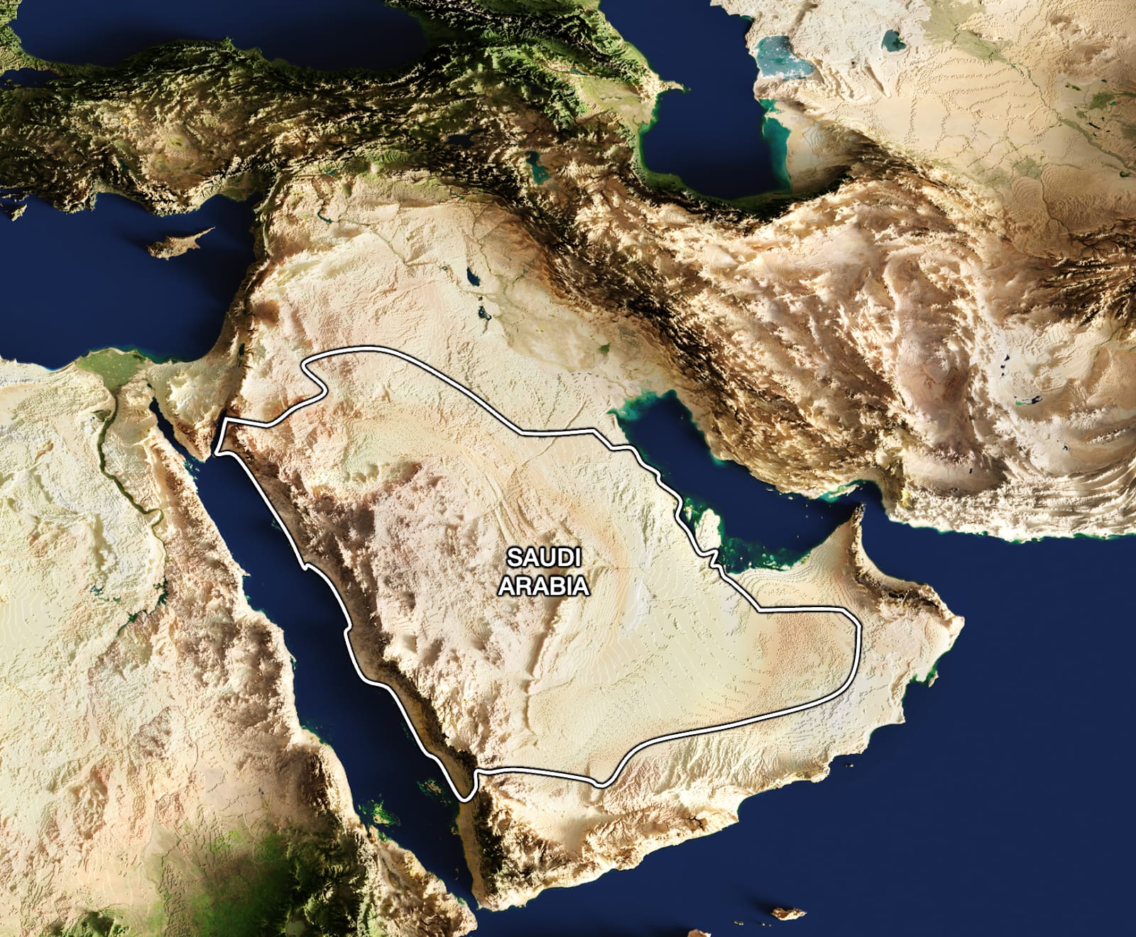 Every map draws it differently, so I had to pick what I thought made the most sense, and my guess is the Najd is defined by the Arabian Shield outside of the coast, because: