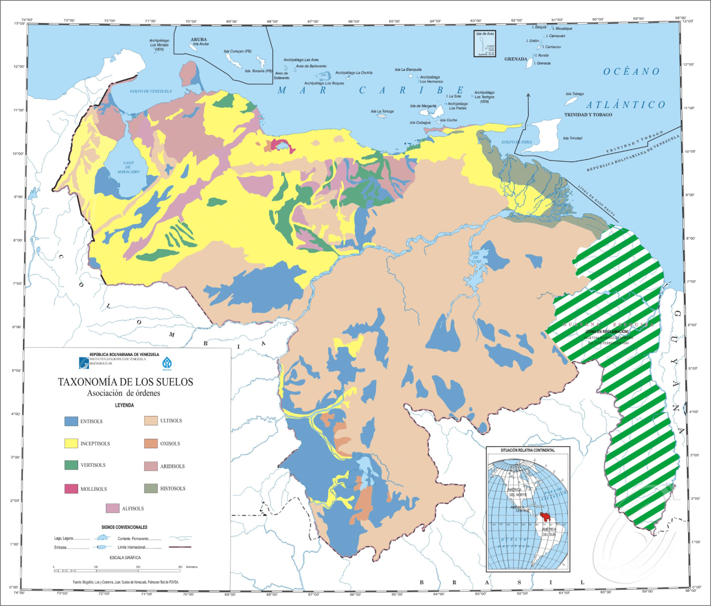 This is because the Guiana Shield is super old and close to the equator, so it’s been stripped of nutrients for eons, and any sediments that are deposited in the Orinoco Valley from there don’t add much fertility (hence the infertile ultisols, in brown on the map above). It’s also why the Andes side of the Llanos is a bit more fertile (yellow).