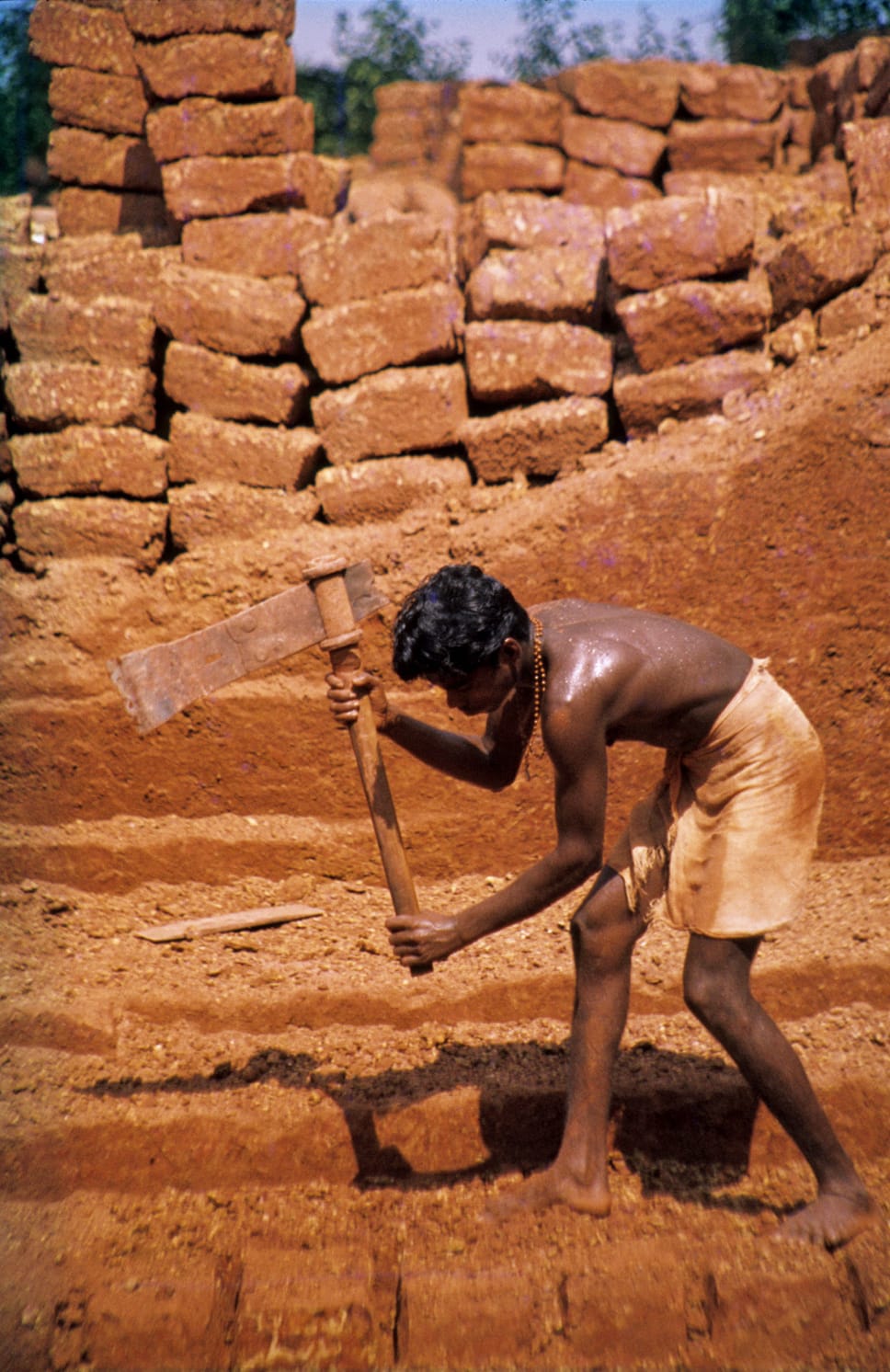 This video is from tropical Australia, where extreme weathering by constant rain and heat makes laterite, a certain type of soil that hardens with air. People can make bricks out of it.
