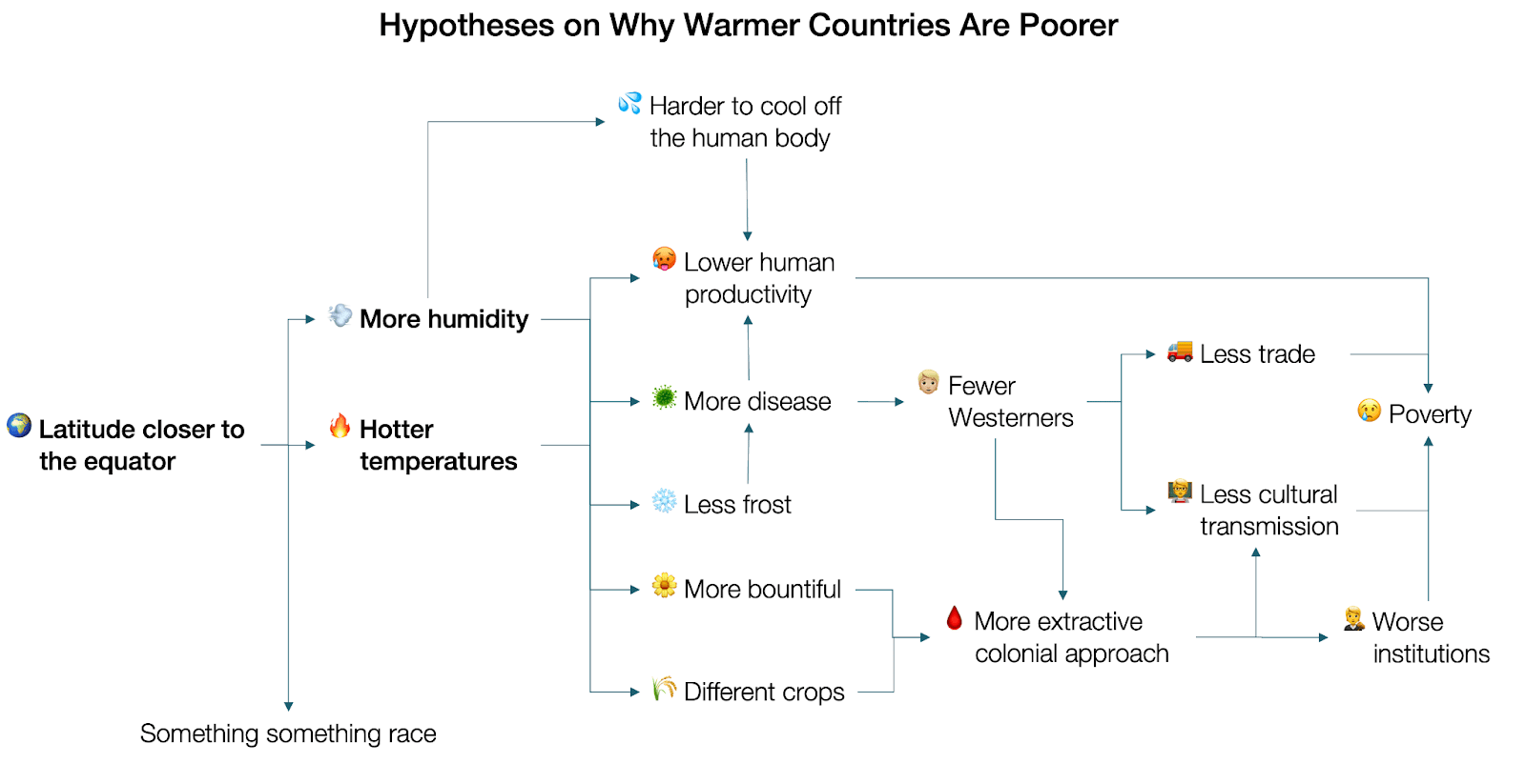 This article is the third on the topic of why warm countries are poorer. The first laid out the theory, and the second and this one address the comments.