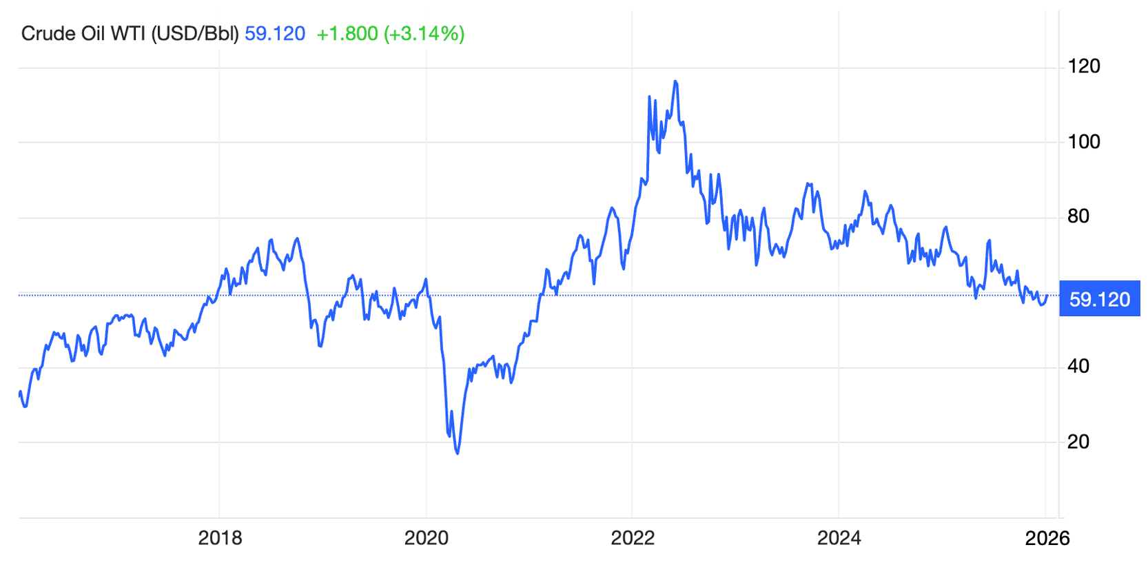 But Venezuela’s oil is worse quality than most, so it sells for cheaper, ~$8 less as of today, or $52.1 Let’s assume that continues.
