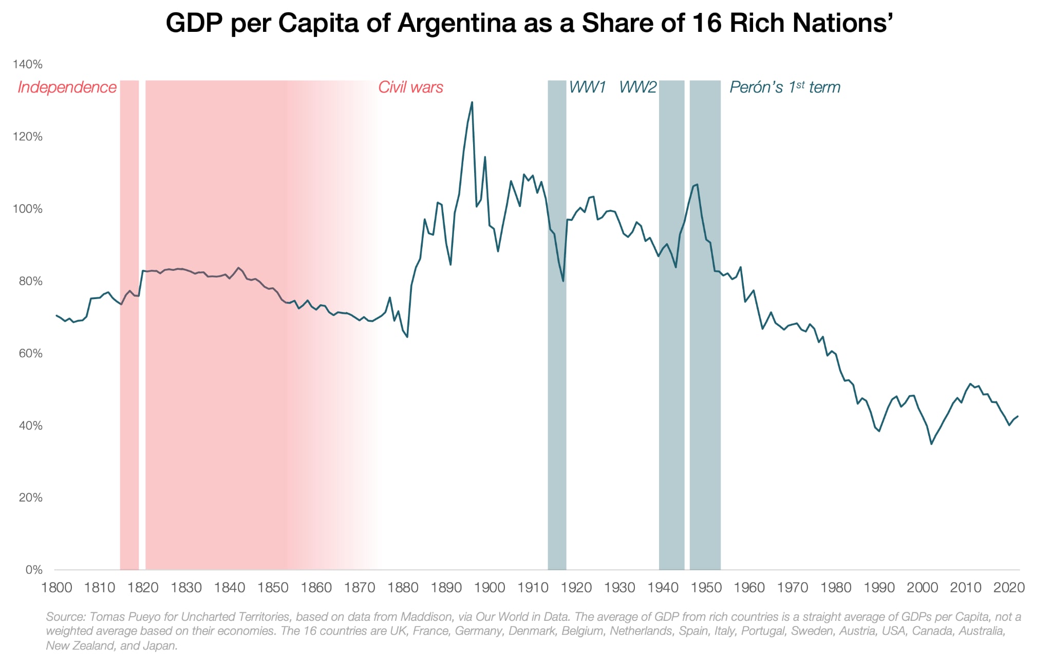 For decades, Argentina (which means “the country of silver”) was among the richest countries on Earth—richer than France, Germany, Japan, or Italy: