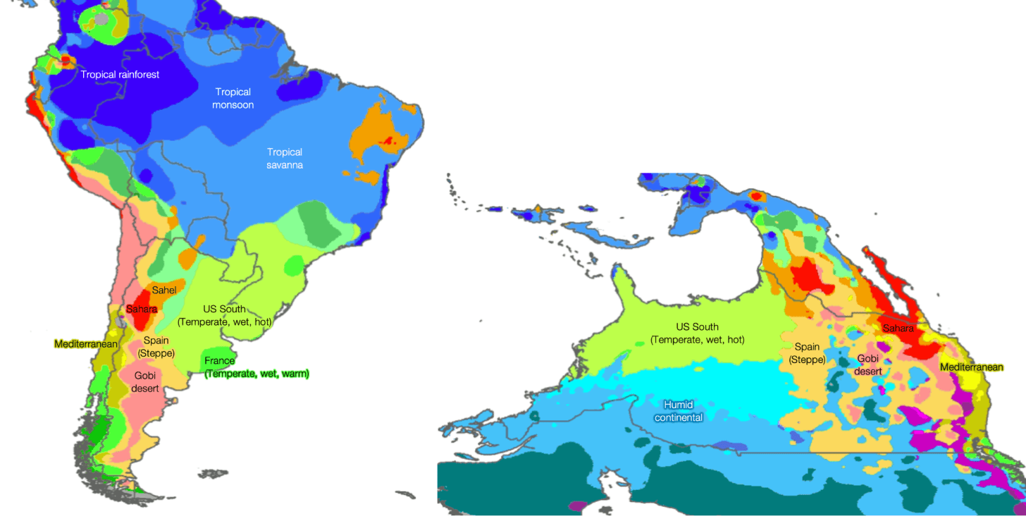 Not only do the US and Argentina have a similar geography for the same geological reasons. They’re also at similar latitudes, just on opposite sides of the equator!