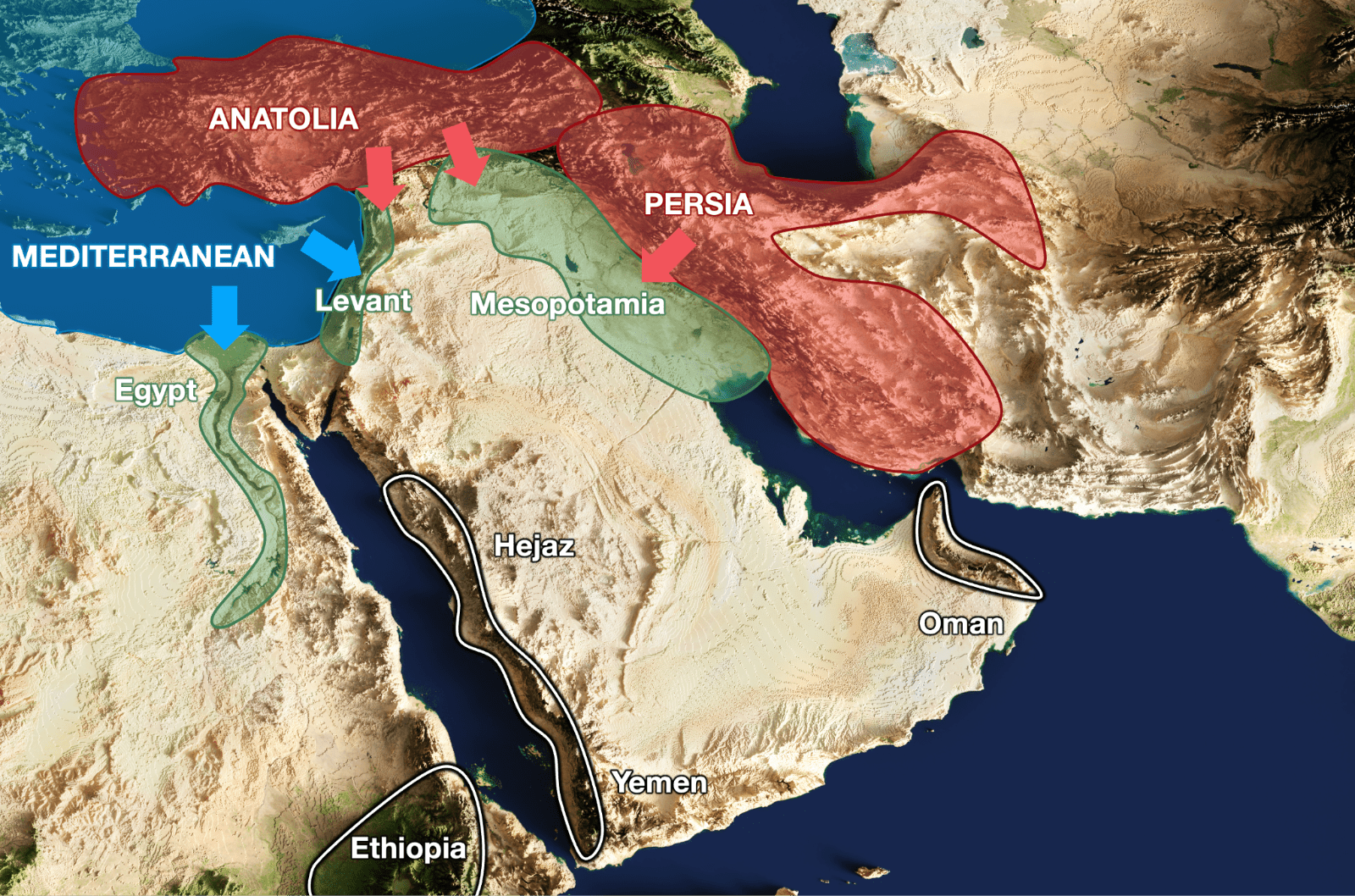 In the case of the Levant and Mesopotamia, those that control the land (Anatolia and Persia)