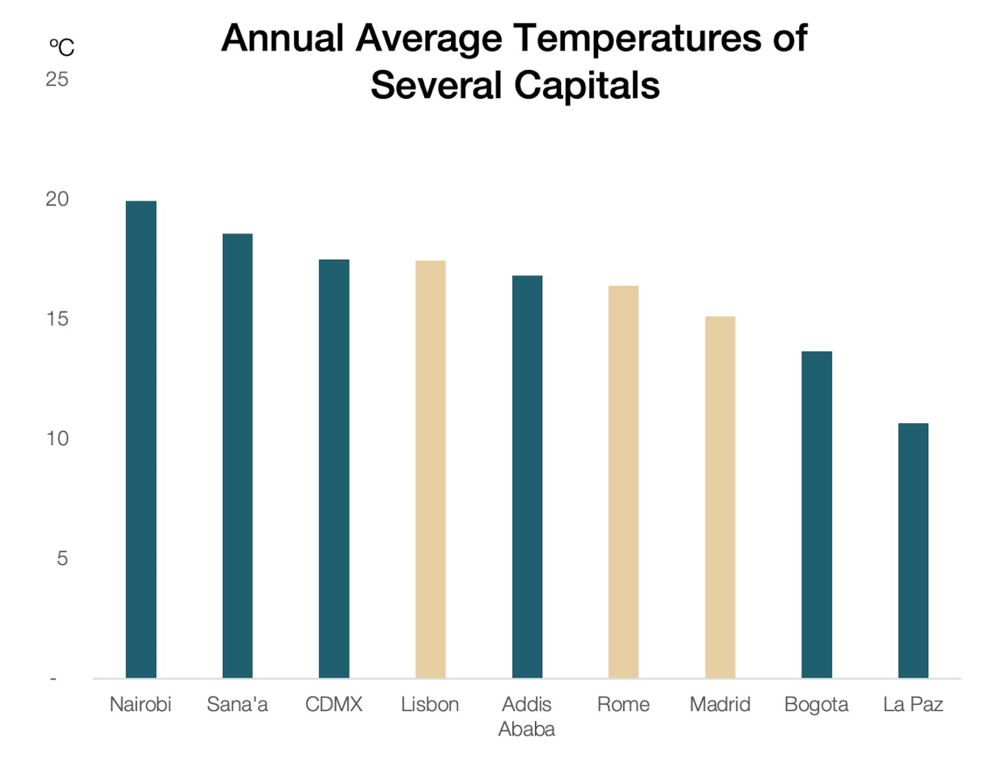 Ulaanbaatar, in Mongolia, is extremely high for its latitude, which is why it’s the coldest capital on Earth. La Vella, the capital of Andorra, is higher than Jerusalem or Madrid, but Andorra is a microcountry that is only rich because it’s nested between France and Spain.