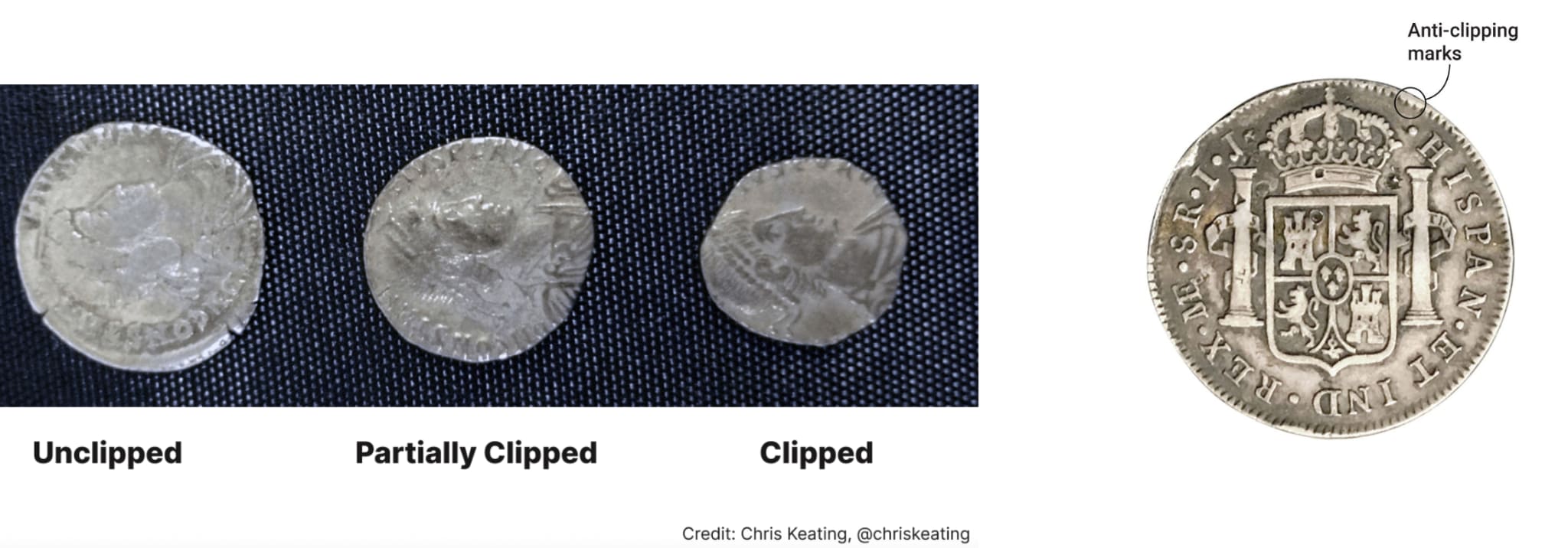 As silver and gold became scarcer, people started debasing the currency: Diluting it with other metals, clipping its edges…