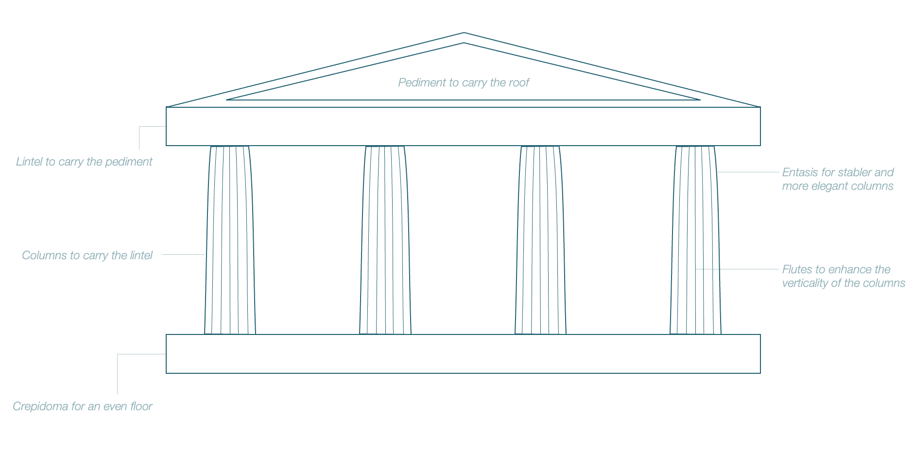 For example, when you’re making your walls in stone, they can carry the weight of the entire structure. It would be expensive to do the same with timber, so instead, timber architecture tended to have strong wooden columns to carry the weight and light timber for the walls.