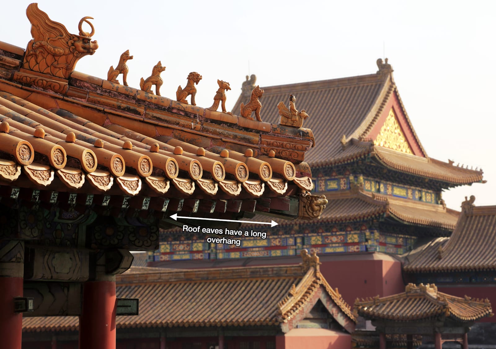 Notice what’s below the roof? That’s called a dougong, and is very typical of Chinese architecture. It’s to support the weight of the roof. Why?