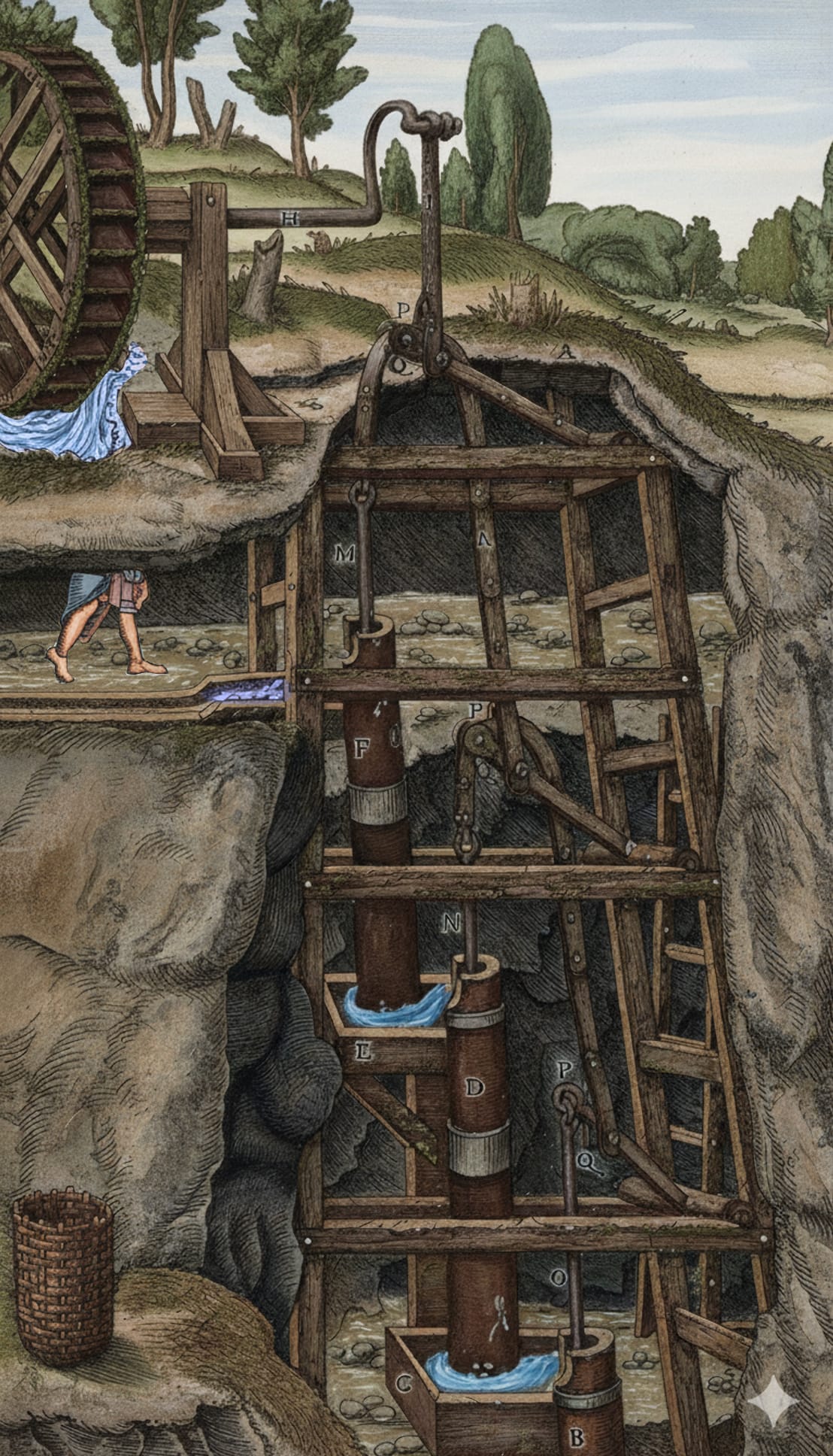 As silver became more and more valuable, flooded mines suddenly became attractive. How could we get this water out so we can keep mining?