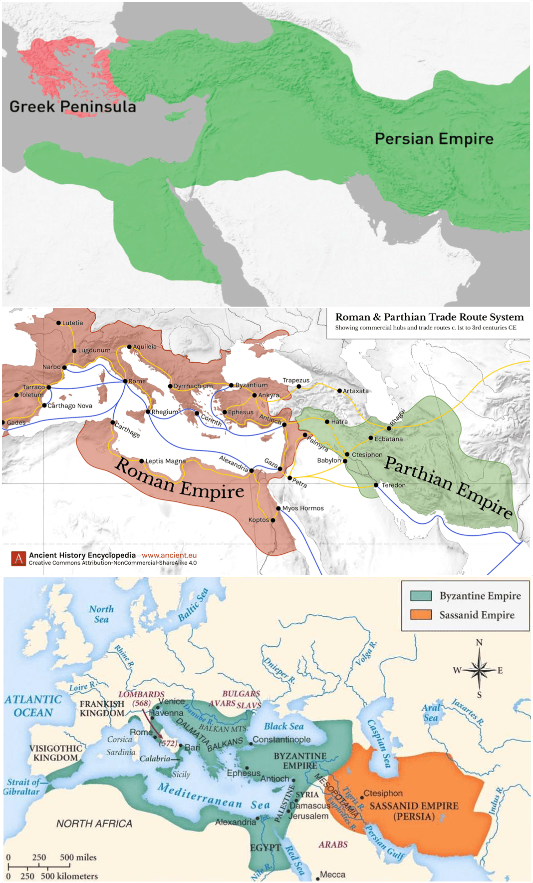 In all these maps, you’ll see that the Arabian Peninsula is in the smack middle of both, yet was never a part of either empire. Why? Because it’s too remote: