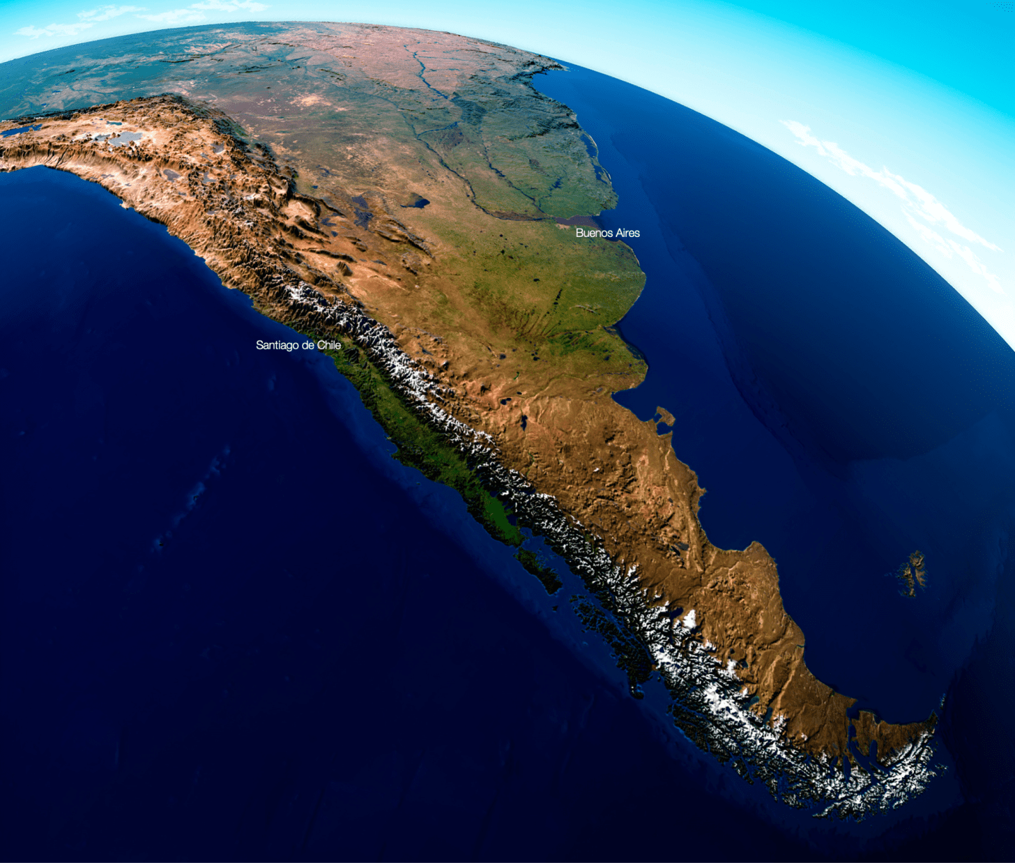 This makes the US West Coast, the Amazon, and southern Chile very wet. But these rains also affect the north of Argentina, feeding the Río de la Plata basin, and dropping tons of water on the eastern Andes: