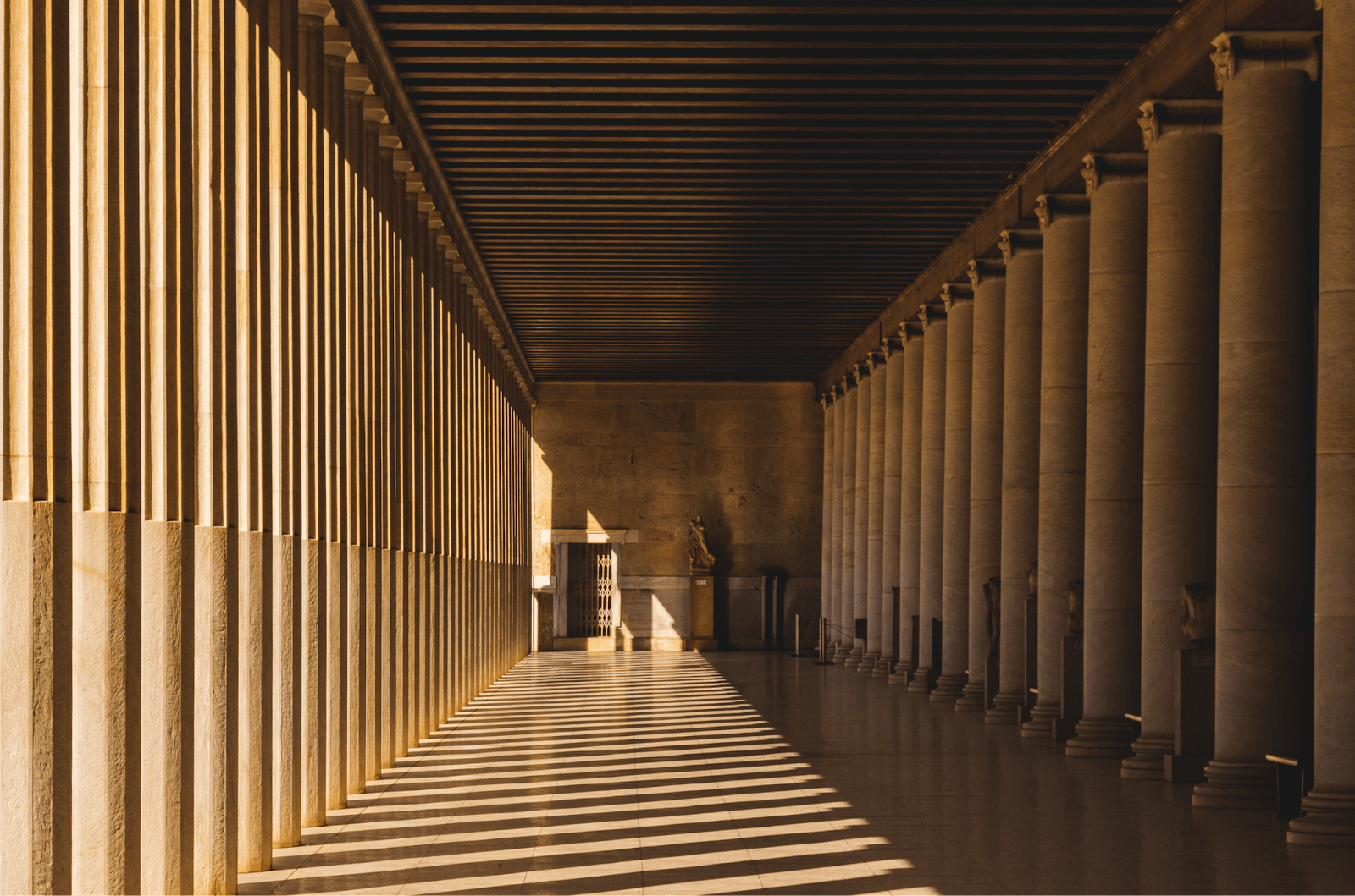 These structures still need to stand, but they’re heavy, so we see small indoor spaces and lots of columns again.