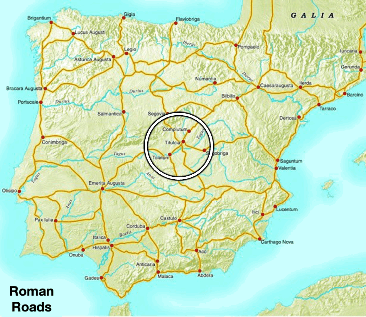 What’s a natural road? A line that quickly connects one important city to another through pretty flat terrain. You can see for example how many of Spain’s modern roads are close to where old Roman roads were:
