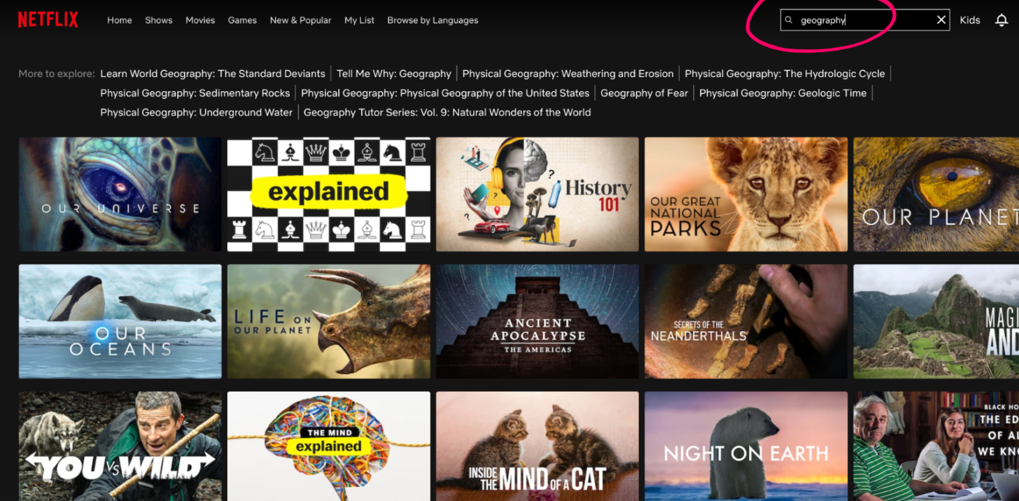 There’s actually very little amazing streaming content about geography. Look at what’s on Netflix for example: