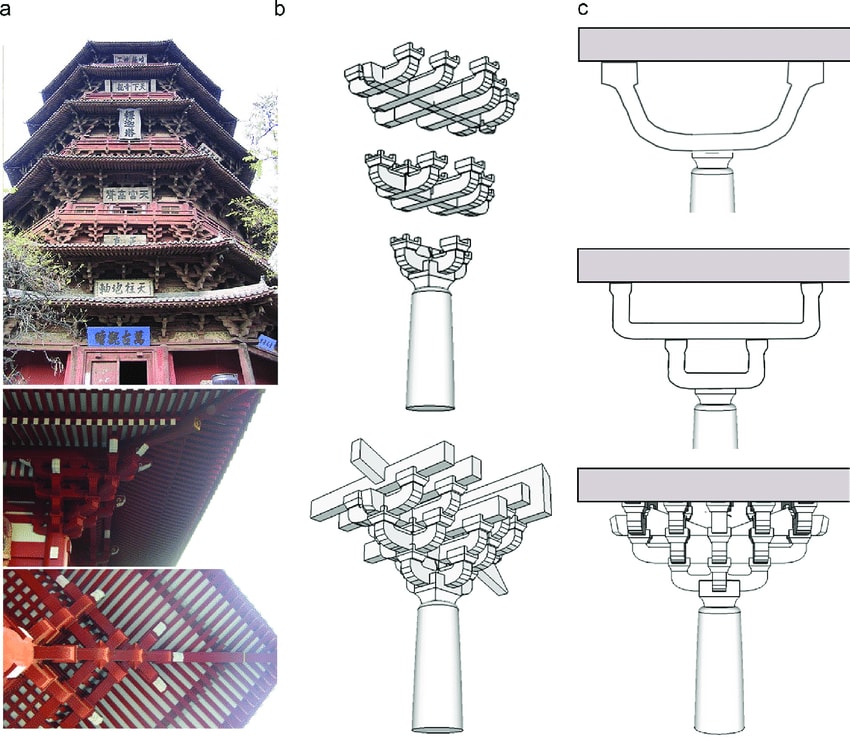 The dougong was the solution—nested brackets that could reach far into the eave to support it.