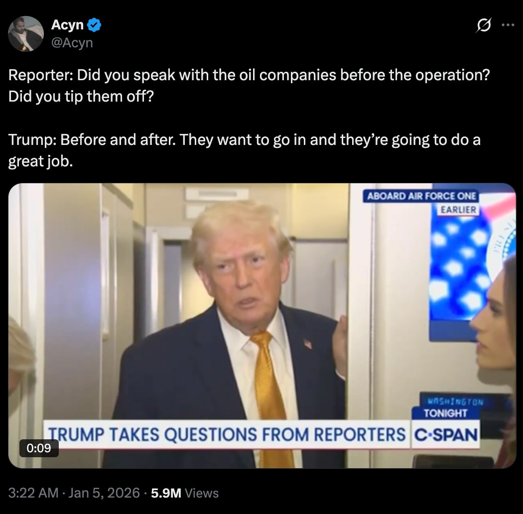 That’s why Trump met with oil executives a few days ago to get commitments to invest $100B into Venezuelan oil, and why the executives answered lukewarmly.