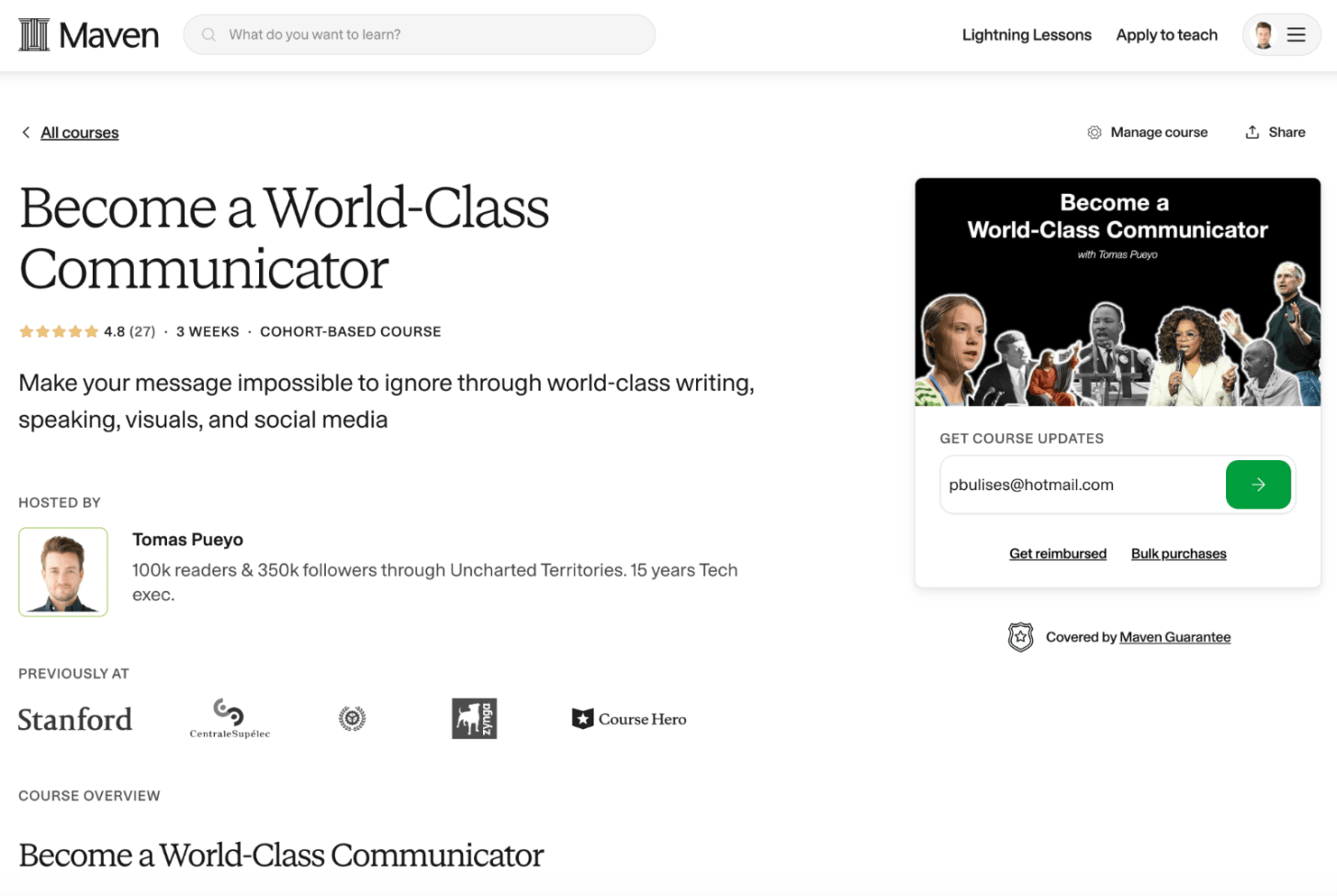 If the goal is to help people make better decisions, courses become an obvious next step. They can be asynchronous or cohort-based. AI tools will help them scale tremendously, as the biggest challenge today is that the time of the creator is finite, but the value they provide is much higher than what their employees do (so you don’t want to be coached by one of their employees, but it might be good enough to be coached by their AI version). This is especially sensible for Uncharted Territories as I already have a successful course, which I just couldn’t push more because it was taking too much of my time, especially giving feedback to customers on their pieces of communication.