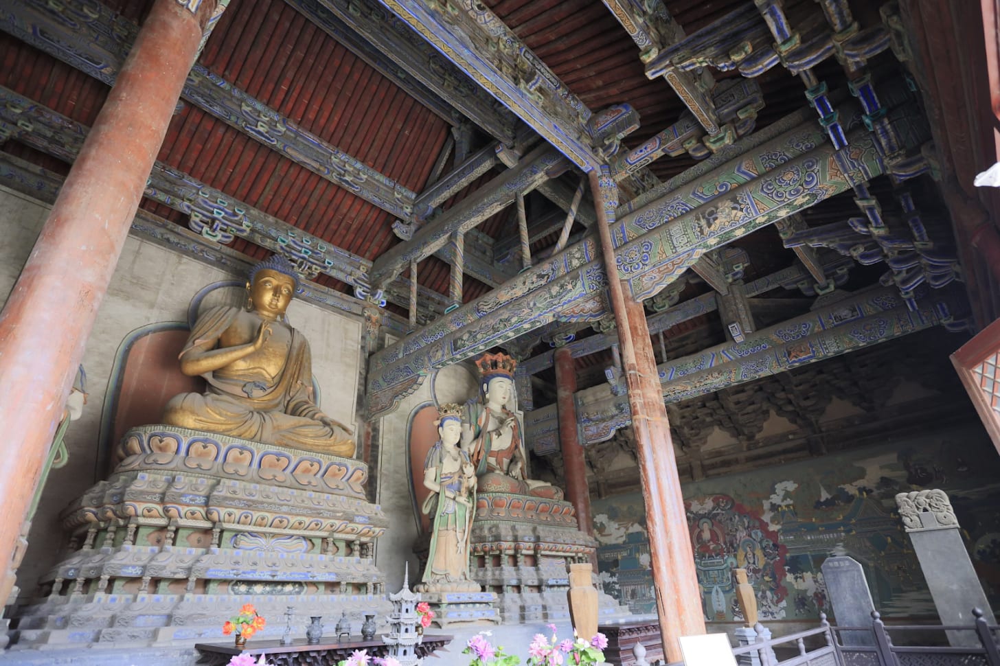 Look at the beams, columns, and wooden roof of the Shanhua Temple:
