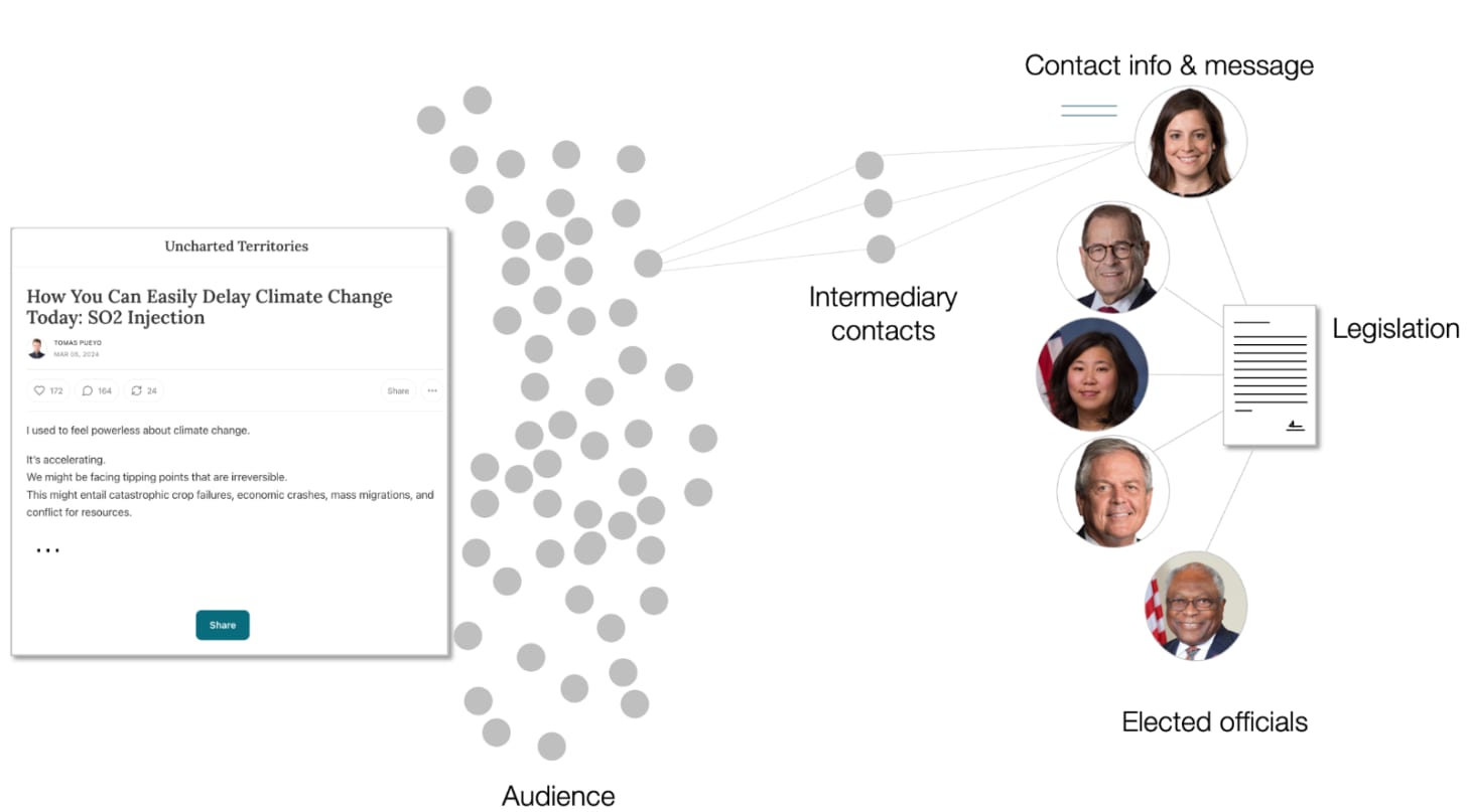 Before, this was impossible for the same reason as software in articles was impossible: It took too many people, it was too expensive. But I don’t think that’s true anymore: Media companies could have a substantially bigger impact by building the tools to help their audience coordinate between themselves to effect change in the world.