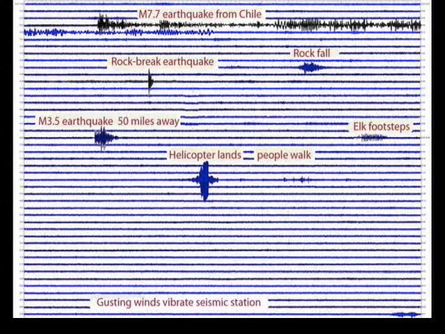 However, earthquakes have a characteristic “shape.” The magnitude 7.7 earthquake above looks quite different from the helicopter landing, for instance.