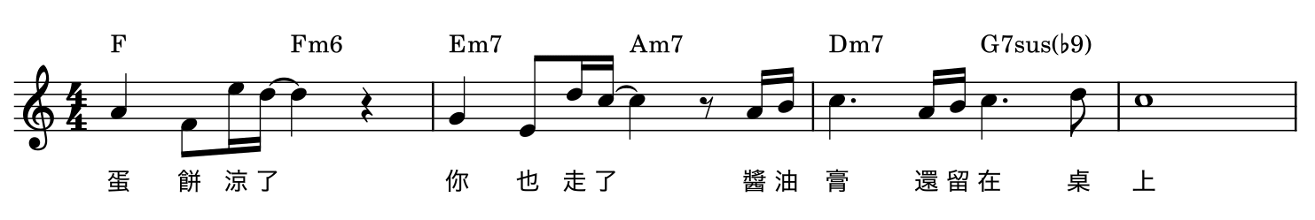 (注意「你也走了」的「了」字時,旋律是 C,和弦是 Am。)