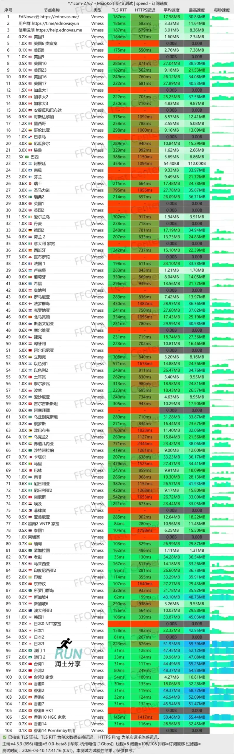 下次准备筛选一下,仅测试 5 大地区节点,这样更直观的了解常用地区的表现。