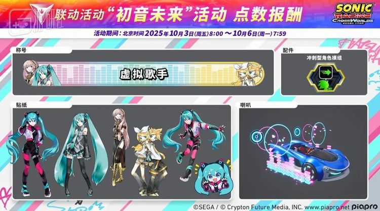 如今《交叉世界》除了加入初音角色与专属配车,为了庆祝这次联动,10月3~6日游戏内还将开展初音未来Festa特别活动,能看出世嘉对这次企划确实很重视。