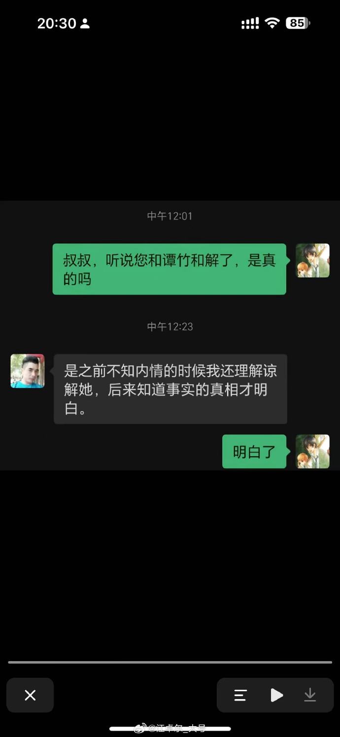 4 月 29 日,刘杰指出谭竹「把钱给别人乱花」而感到不满,谭竹直接回应「分了吧」,随后删除好友。5 月 1 日,谭竹又加回来了4。