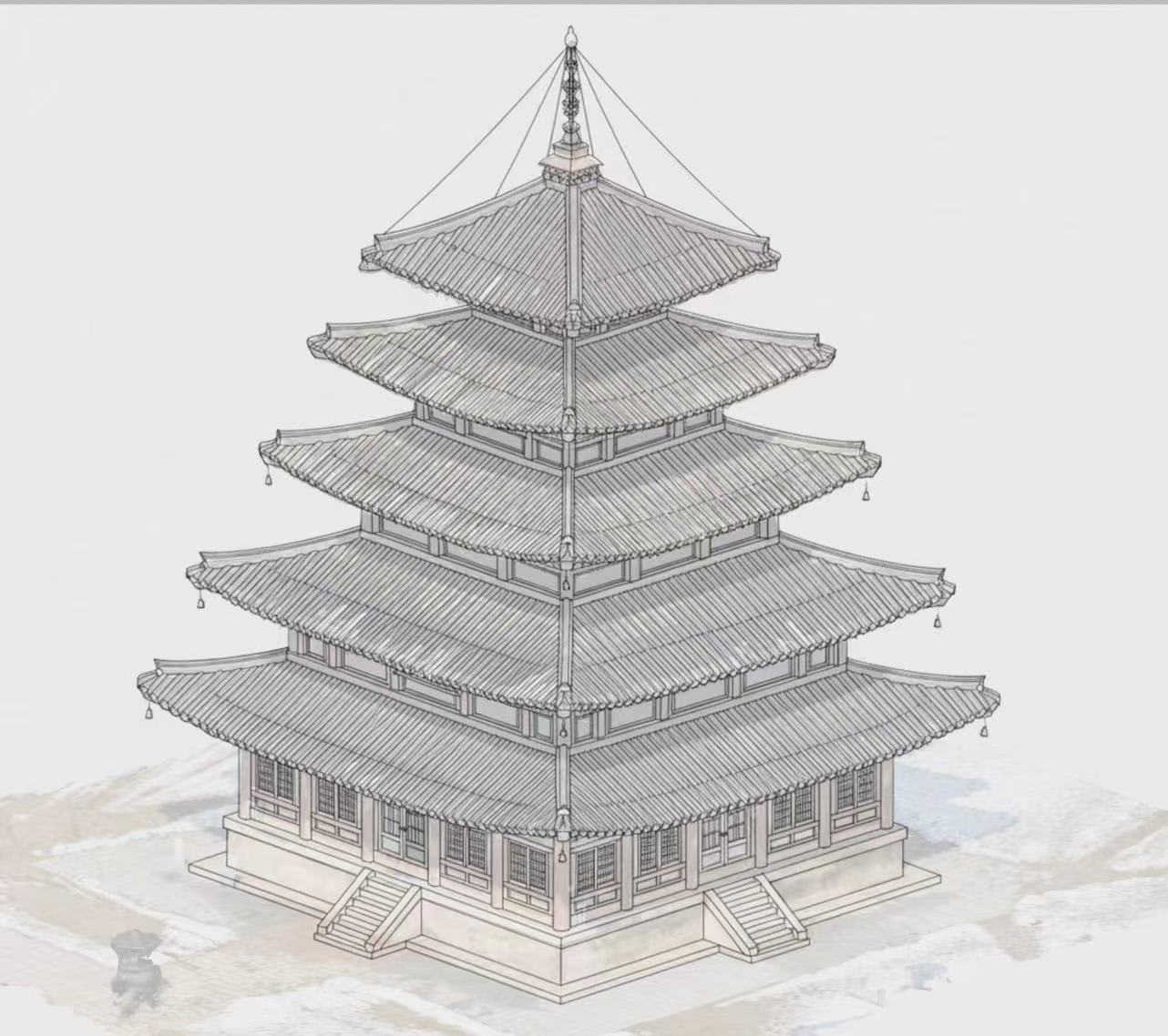画面远处的是辽中京大明塔,Funes 拍摄上线的第一个模型