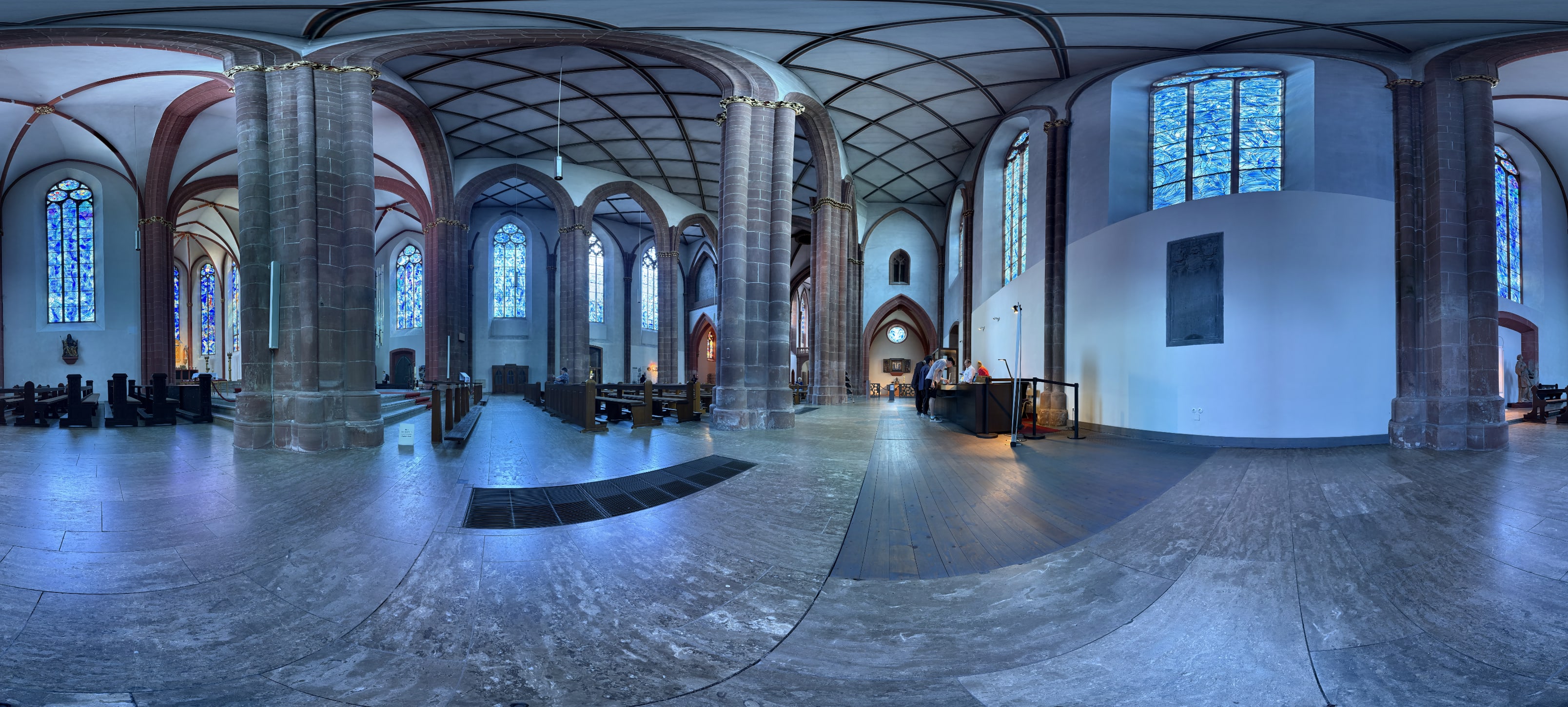 全景照片来自 St. Stephan’s Church of Mainz,其中整个教堂蓝色彩绘玻璃的作者是夏加尔。