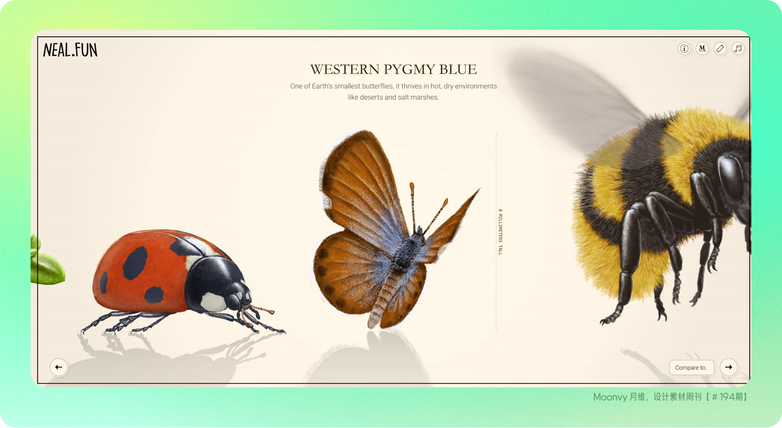 生命的大小,从 DNA 到人排列起来,网站设计的很有意思哦