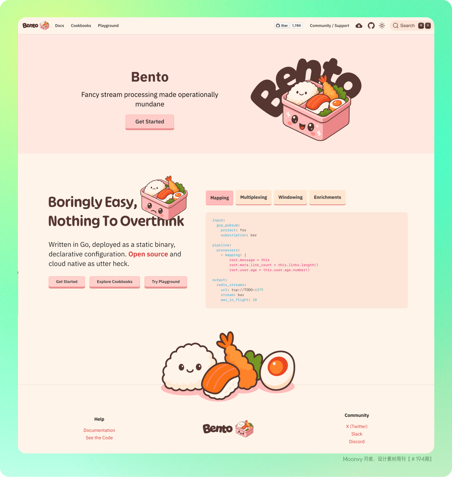 Bento 是一个帮企业在后台自动处理数据的小工具,很可爱的软件官网设计风格,技术类网站很少有粉色还这么可爱的