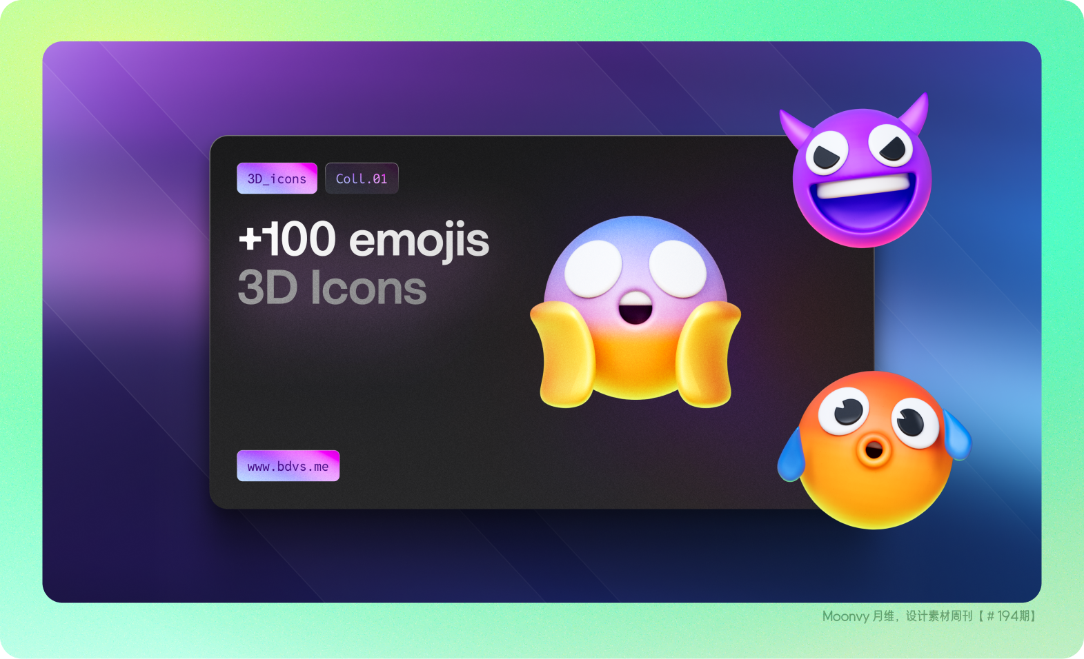 一套 100 个 3D 表情符号图标,由 C4D 制作并在 Photoshop 精细调整,适合用于万圣节主题落地页、社交媒体贴文或产品界面。