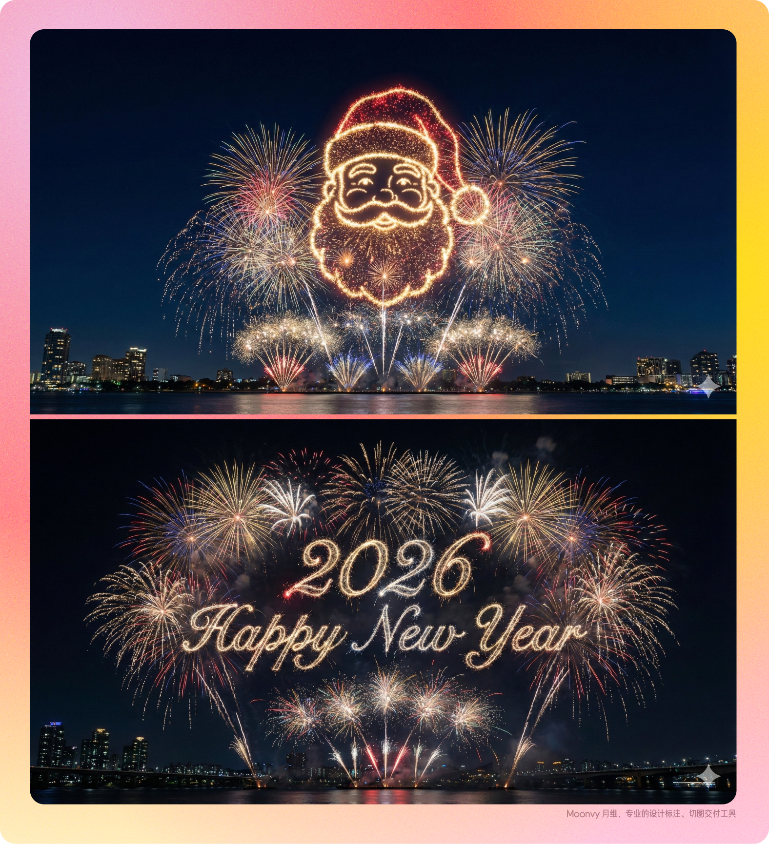 你的烟花表演!全新超逼真烟花提示模板上线:只需输入数字、字母或符号,即可观看它们无缝化身为绚丽夺目的烟花——保证电影级逼真效果!