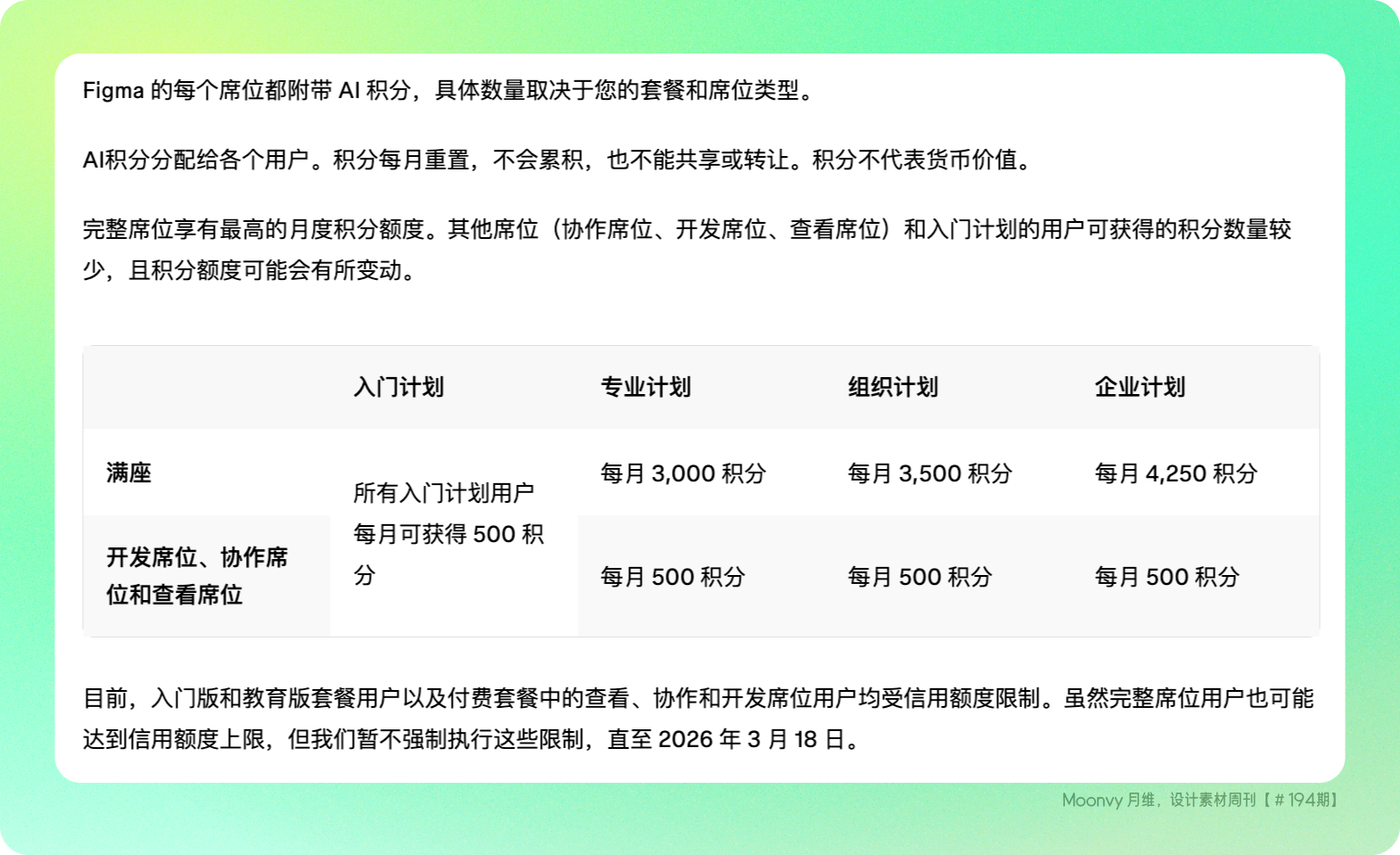 从本周开始,管理员和用户现在可以在 Figma 中跟踪 AI 积分,以了解其当前使用情况并规划未来的费用。