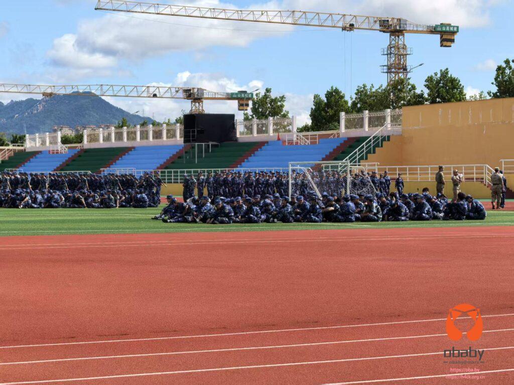 球场上还是昨天大雨留下的积水,不过打球影响不大。把宝子送到球场准备去学校操场跑圈。然而,到了球场才发现,貌似也跑不了圈,学校的新入学的大学生在军训,操场上到处都是穿迷彩服的大学生。