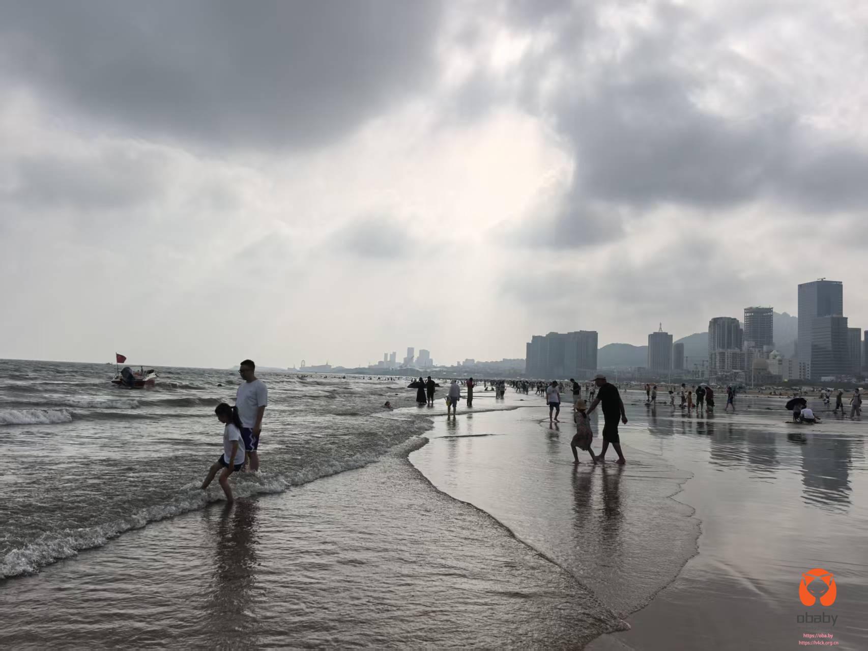 下午海边人依然不少,现在的海水温度刚刚好,温温的。