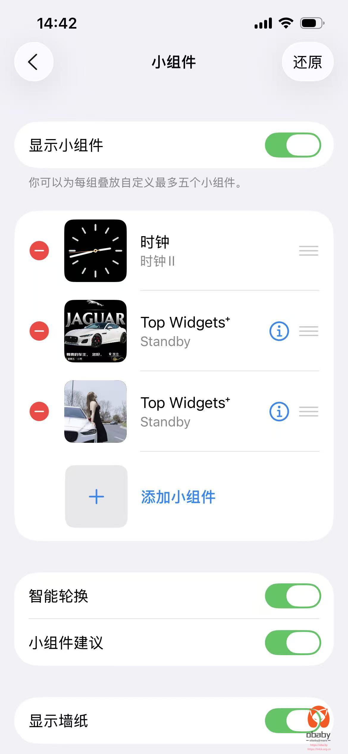 当然,随之而来就是carplay 也有了小组件,可以自己添加小组件了。不过,系统自带的小组件比较少。