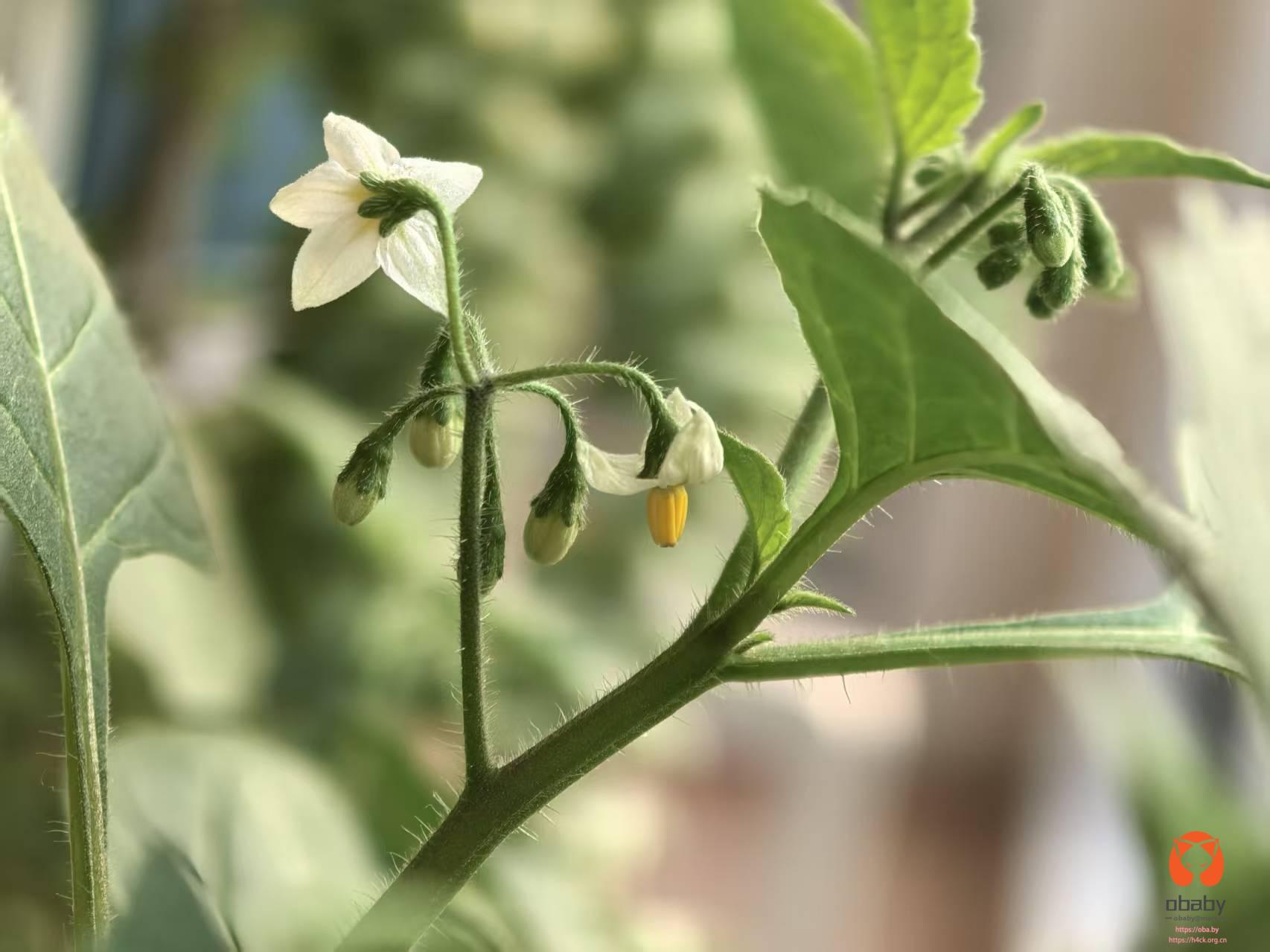 终于某一天,自己去给从发芽的地瓜上拔下来的芽浇水的时候。看到了花盆里漏出头的龙葵,欣欣向荣,或许,她更像野草吧。
