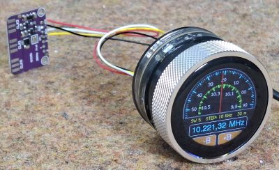 The modules in question are the SI5351 Clock Generator module, which is a handy bit of kit with its own crystal reference and PLL to generate frequencies up to 150 MHz, and the Elecrow CrowPanel 1.28inch-HMI ESP32 Rotary Display. The ESP32 in the CrowPanel controls the SI5351 module via I2C; control is via the rest of the CrowPanel module. This Rotary Display is a circular touchscreen surrounded by a rotary display, so [mircmk] has all the inputs he needs to control the VFO.