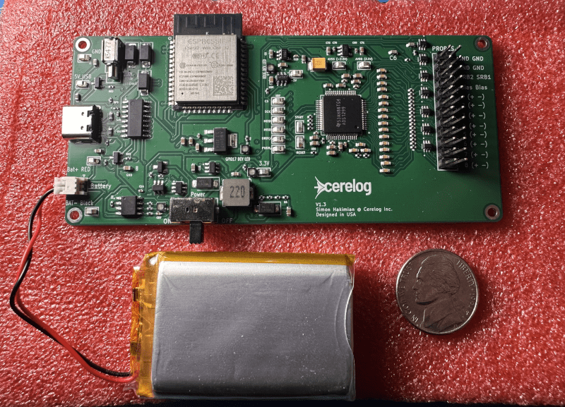To get it plugged into the breadboard, [Chris] is using the standard 2.54 mm headers you can get anywhere; to get it plugged into a card reader, he’s just relying on the PCB being cut to shape. [Chris] notes that you’ll want to have the board built at 0.6 mm thickness if you’re going to plug it in like a micro SD card.