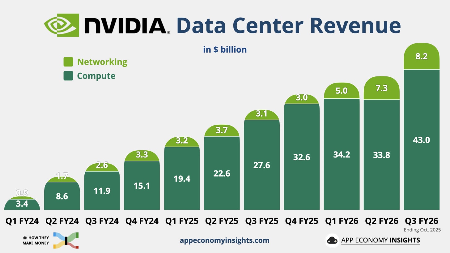 ⚡ Compute revenue surged 27% Q/Q as Blackwell availability improved and large projects moved into production. The absence of China revenue is now fully baked into the baseline. The growth you’re seeing is entirely ex-China, an important signal that the AI cycle no longer depends on China at the margin.